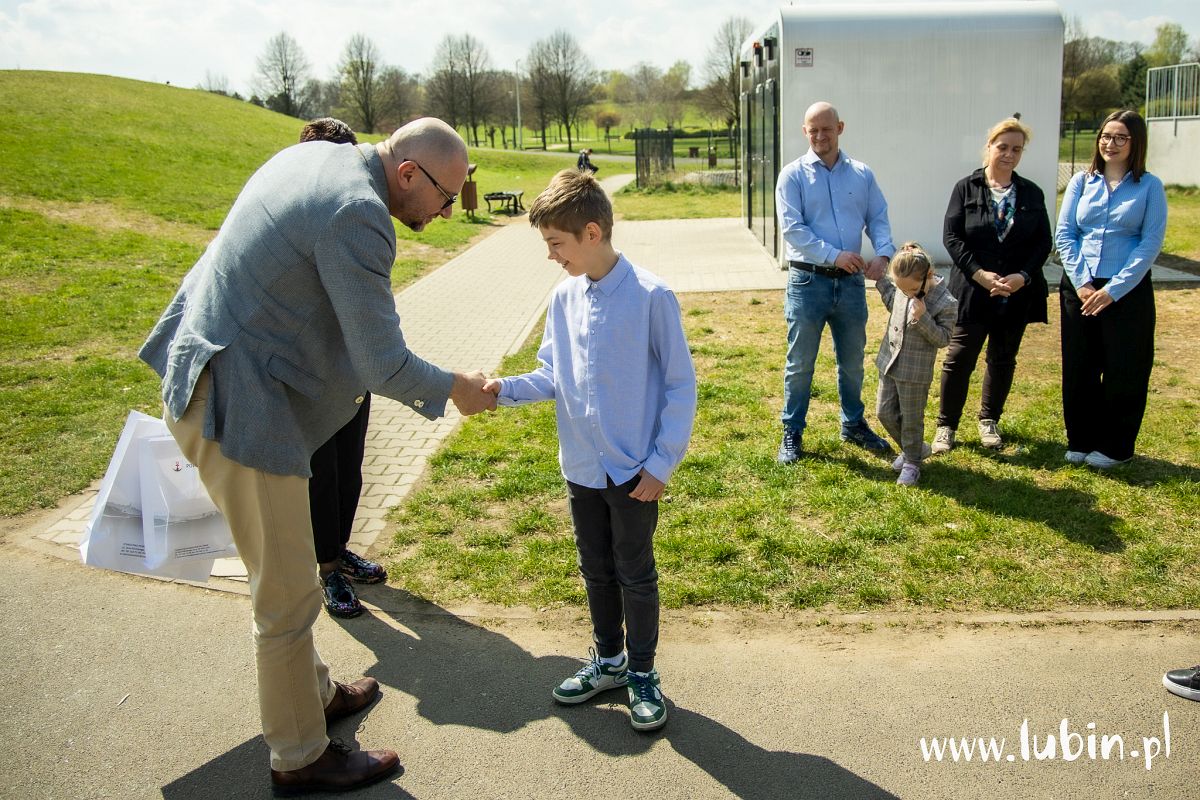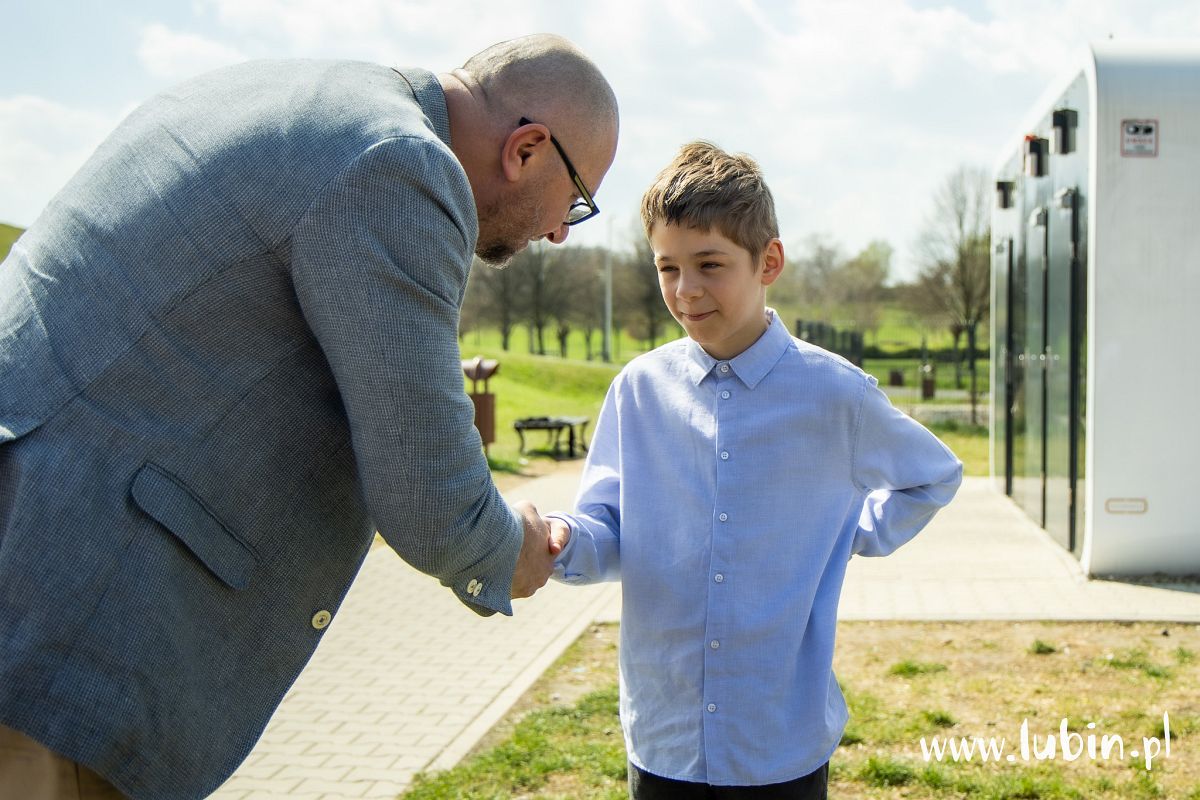 – Krzyś, nasz mały dziesięcioletni bohater zachował się prawidłowo. Ponieważ jest jeszcze małym chłopcem sam nie mógł pomóc, pobiegł szybko po opiekunkę i dzięki temu bardzo prawdopodobne, że ten mężczyzna, który tutaj został na skateparku znaleziony, przeżył. Uratował mu więc życie i za to jesteśmy mu wdzięczni. Tylko się cieszyć i być dumnym z takiej postawy – mówi starosta lubiński Paweł Kleszcz. – Staramy się propagować wszystkie tego typu zachowania. Niedawno dwóch chłopców uratowało ranionego nożem mężczyznę. Dzięki ich interwencji on trafił do szpitala i został uratowany. Gratulacje również dla nich. Nie możemy być obojętni, trzeba reagować! I to była wzorowa reakcja – dodaje.