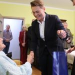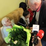 99-latka, mimo że przyznaje się do niedosłuchu, chętnie żartuje i rozmawia. Wszystkich swoich gości obdarowała dziś zrobionymi własnoręcznie na drutach skarpetami – nie zapominając również o dziennikarzach.