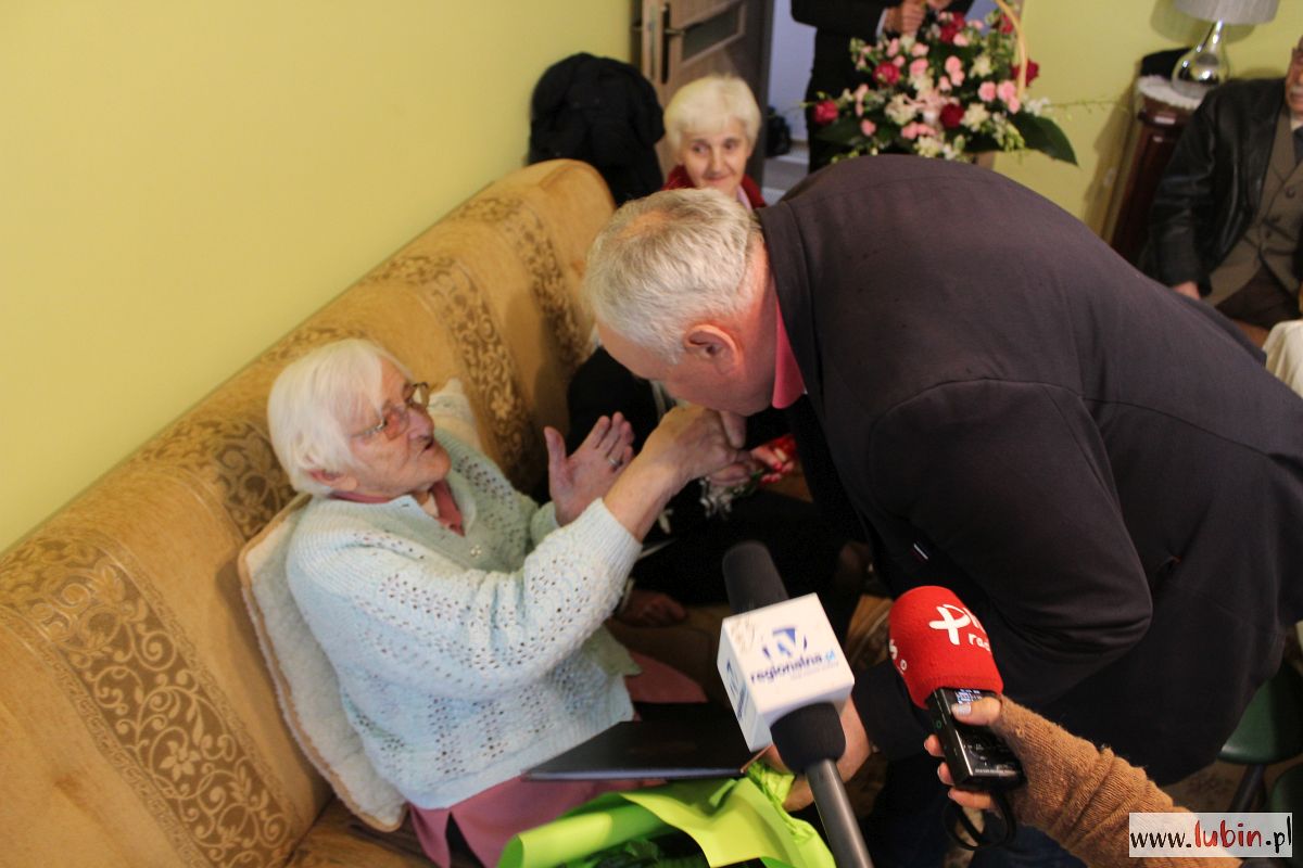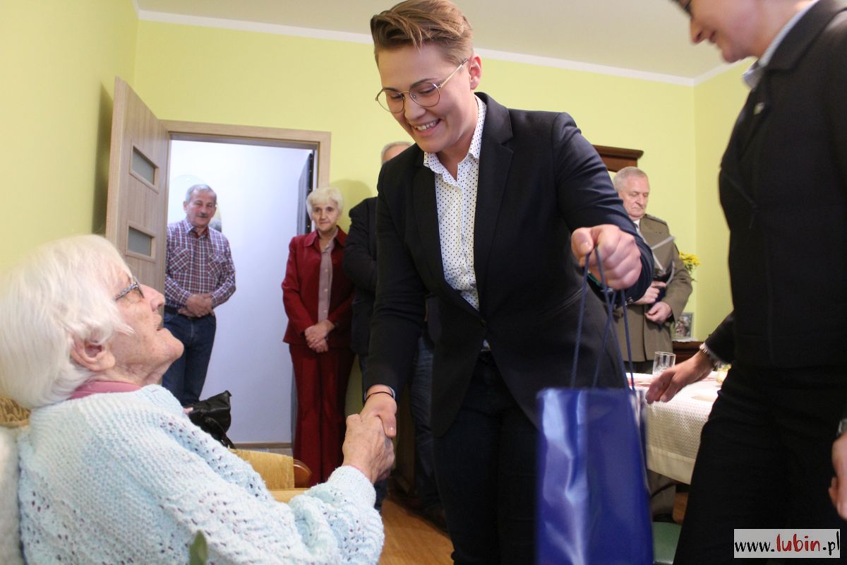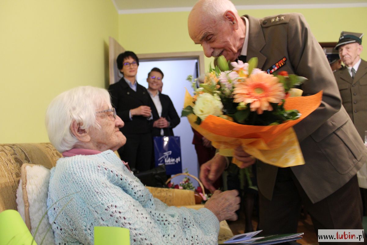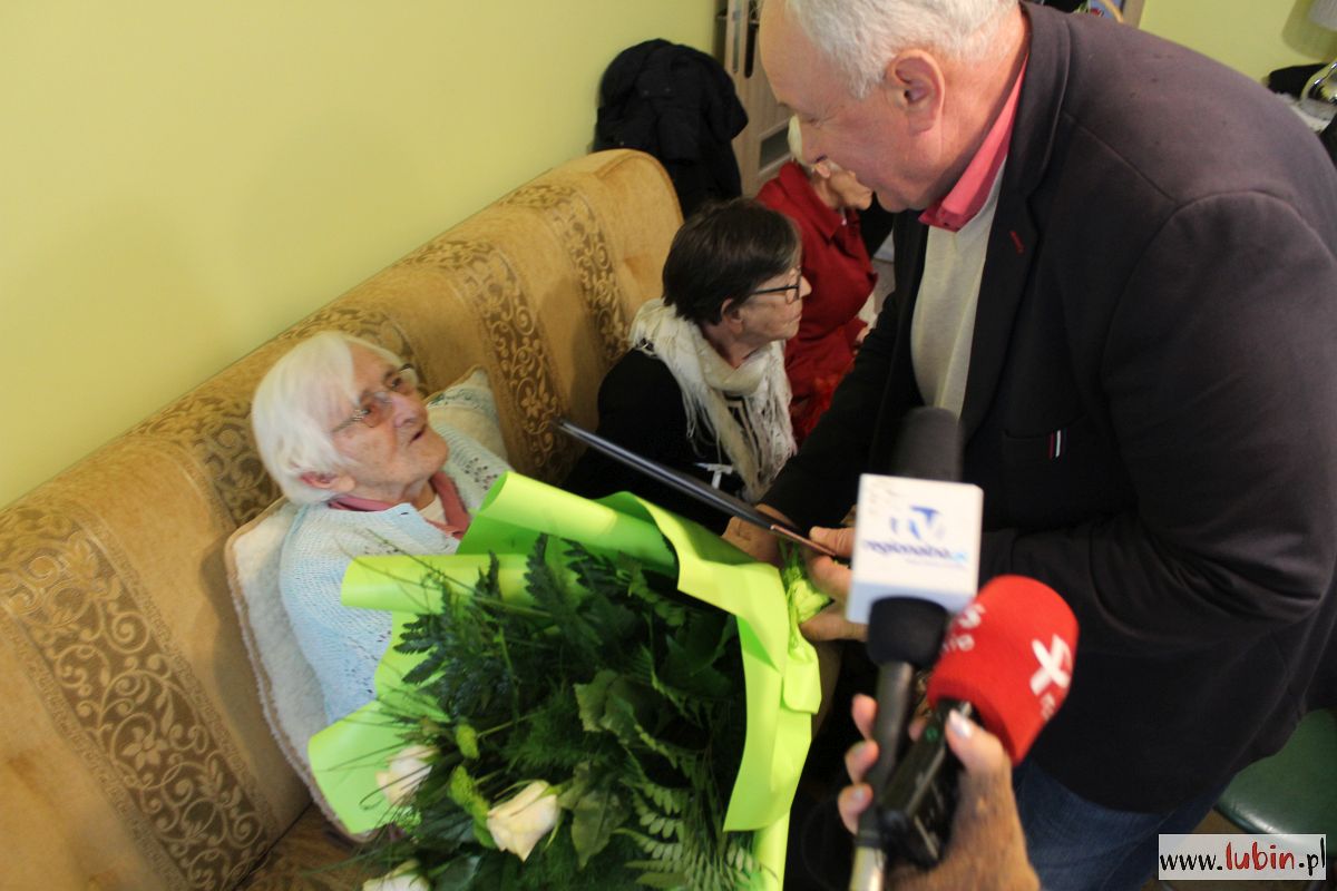 „100 lat to za mało, 120 by się przydało” – usłyszała dziś zmodyfikowaną wersję urodzinowej piosenki Helena Strzelczyk, od przeszło 20 lat lubinianka. Jutro pani Helena skończy 99 lat, a już dziś z życzeniami przyjechali do niej przedstawiciele kombatantów, władz Lubina i powiatu lubińskiego. To jednak nie koniec świętowania, bo w przyszłym tygodniu szykuje się rodzinna impreza.