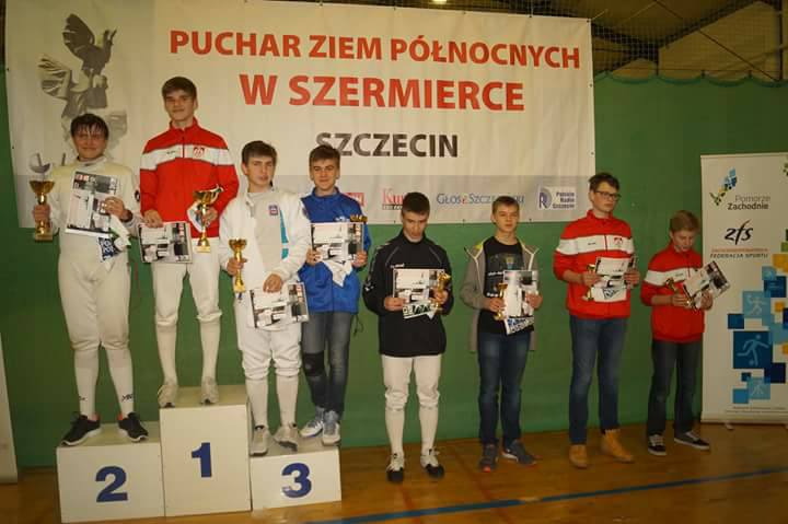 Nasi szpadziści odwiedzili także Szczecin, gdzie odbył się turniej klasyfikacyjny Pucharu Ziem Północnych. Nasz klub reprezentowała liczna grupa zawodników. Jak co tydzień – nie zawiódł jeden z młodszych szpadzistów, wschodząca nadzieja naszego klubu – Hubert Klughardt, który w grupie dzieci wywalczył I miejsce.