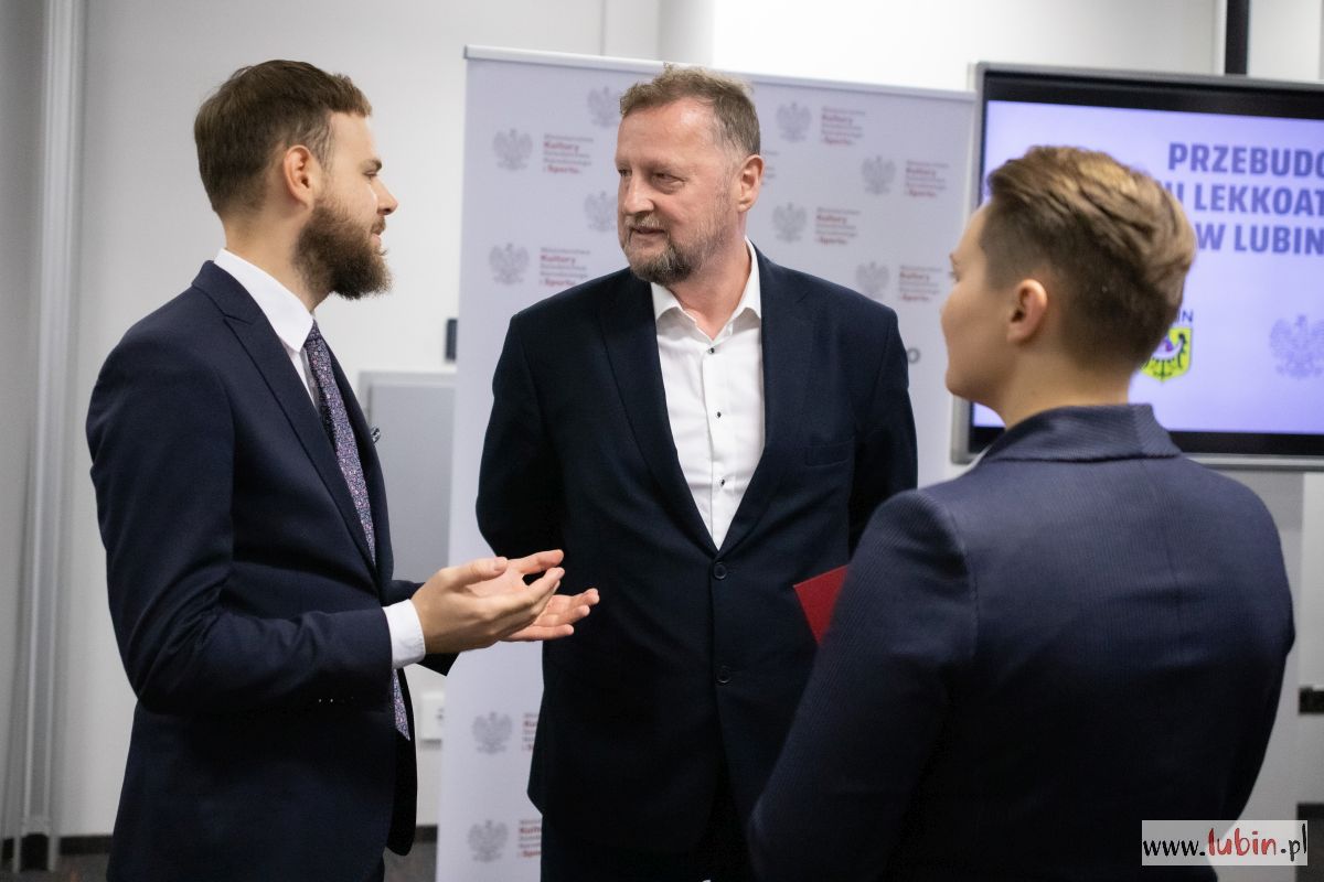 – Myślę, że będziemy o tym dyskutować i wraz z urzędem miejskim podejmiemy działania profrekwencyjne na nowym stadionie. Lekkoatletyka jest pięknym sportem, każdy może ją uprawiać – przede wszystkim biegi – więc myślę, że tym bardziej ta nowa infrastruktura zachęci lubinian – mówi obecny na spotkaniu Mateusz Powązka, doradca ministra kultury, dziedzictwa narodowego i sportu, będący jednocześnie radnym miejskim Lubina z klubu PiS.