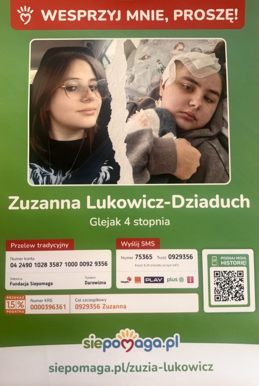 Szczegóły historii Zuzi oraz możliwość wsparcia zbiórki można znaleźć na stronie  siepomaga. Każda nawet najmniejsza pomoc może być realnym wsparciem dla 17-latki i jej rodziny.