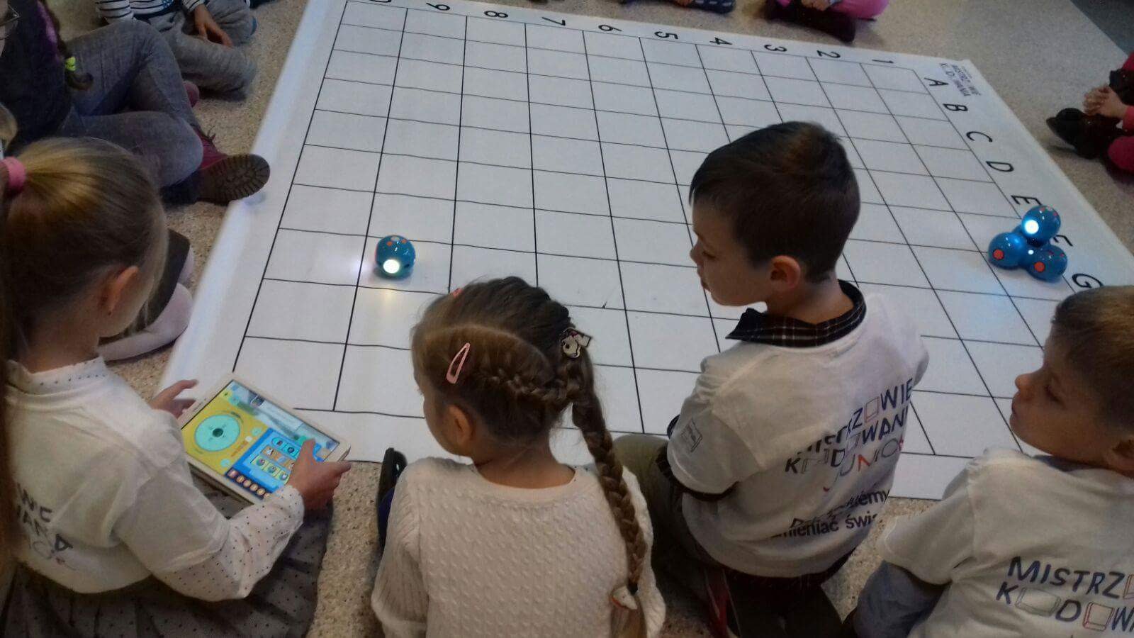 – Zabawę z programowaniem rozpoczęliśmy od programu SCRATCH JUNIOR – mówi pomysłodawczyni akcji Karolina Tokarek, wychowawca klasy Iia. – Przedszkolakom bardzo spodobała się ta aplikacja i jej niesamowite możliwości. Wspaniale bawiliśmy się na macie Mistrzów Kodowania, gdzie pokazaliśmy kilka zabaw matematycznych dr Mirosława Dąbrowskiego. Nasi uczniowie pokazali młodszym kolegom i koleżankom, jak można mądrze wykorzystać tablety do nauki. Największym zainteresowaniem cieszyły się roboty Dash i Dot, które wprowadzają w świat programowania poprzez zabawę. Uczniowie naszej klasy z ogromnym przejęciem opiekowali się przedszkolakami, wspierali, tłumaczyli, naprowadzali. W jednej sali ponad 40 dzieci, jednak nie było mowy o hałasie. Na zakończenie na dzieci czekała słodka niespodzianka: mistrzowski tort Dota. Dzieci były zachwycone. Przedszkolakom żal było wracać do przedszkola i wierzymy, że szkoła będzie kojarzyć im się z miejscem, gdzie dzieją się fascynujące rzeczy, a nauka bywa czystą przyjemnością – relacjonuje wychowawca.