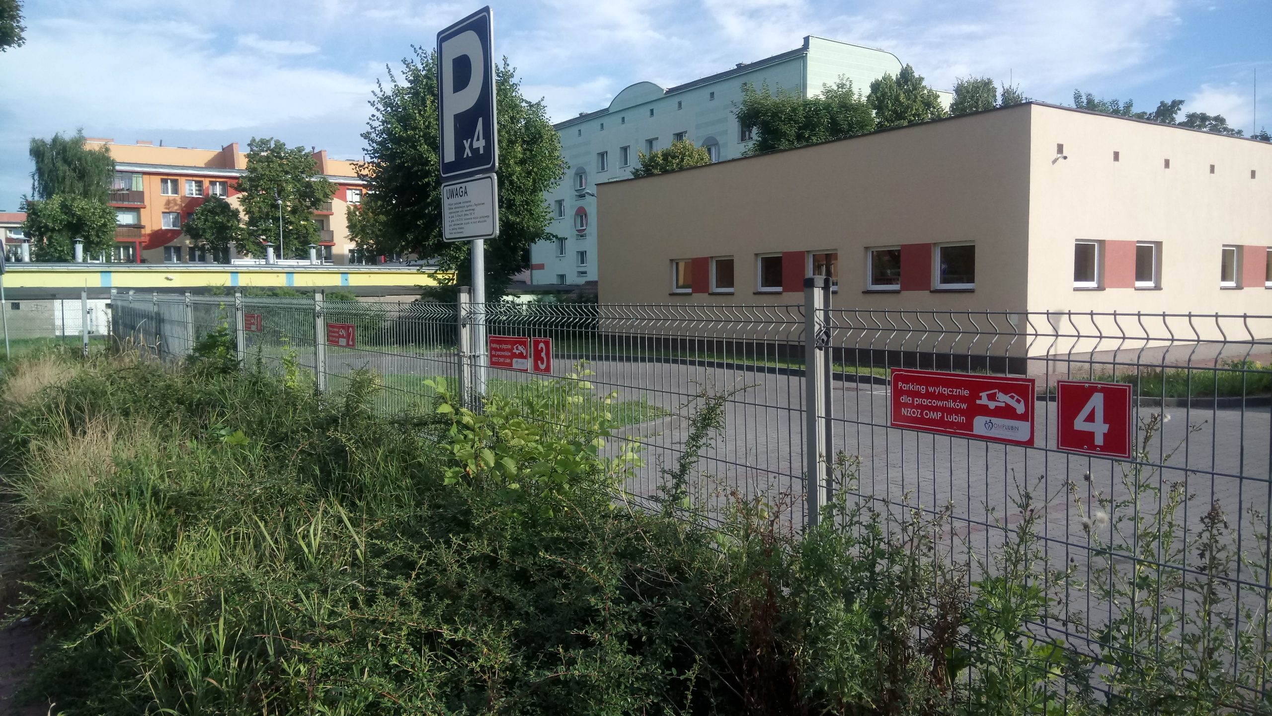 Teren przychodni obejmuje ogrodzony parking przy placówce, a także część zatoki parkingowej przy ulicy Słonecznej. Choć zatokę przychodnia urządziła – za zgodą miasta – za własne środki, przez lata miejsca nie były oznaczone i tę okoliczność chętnie wykorzystywali mieszkańcy okolicznych bloków, zostawiając tutaj swoje samochody. Teraz stracili tę możliwość. Przychodnia większość miejsc oznaczyła zakazem parkowania pod karą odholowania pojazdu i opłatą 200 zł za pozostawienie auta na noc. Stanęły tam także blokady, tzw. motylki.