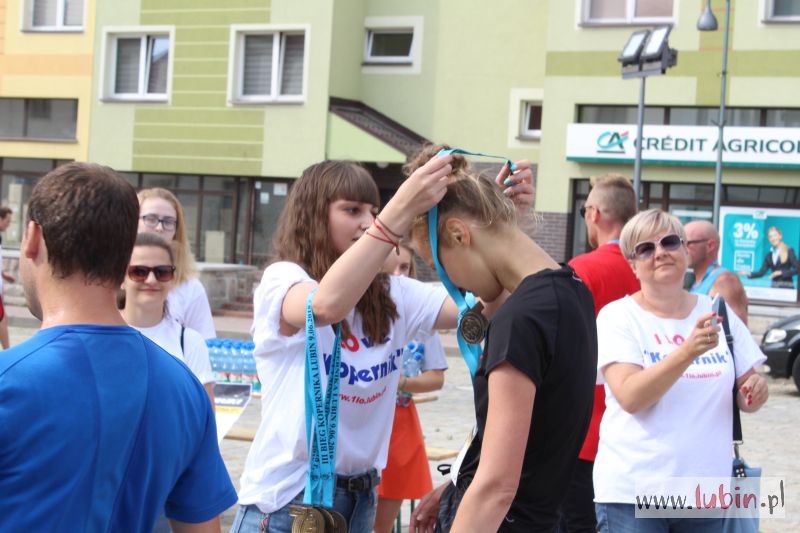 Tuż po przekroczeniu mety i zawieszeniu na szyi pamiątkowego medalu, uczestnicy udali się pod scenę, gdzie odbywały się wspólne ćwiczenia uspokajające. Uczniowie 1 ogólniaka również przygotowali występy artystyczne. Na koniec wręczono puchary i dyplomy dla najlepszych. Kategorii było sporo. Oprócz tych najbardziej prestiżowych, jak open kobiet i mężczyzn, wyróżniono także najstarszych i najmłodszych uczestników, uczniów gimnazjum i szkół podstawowych, absolwentów i uczniów „kopernika”.
