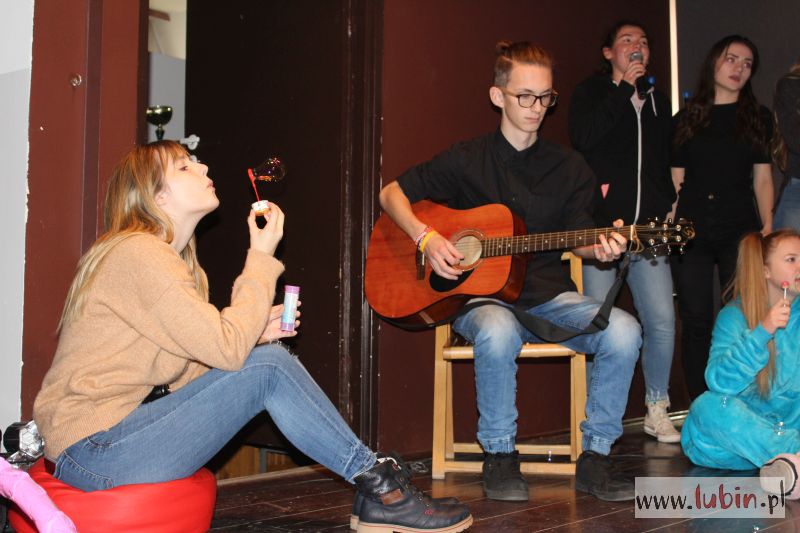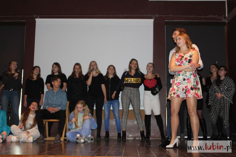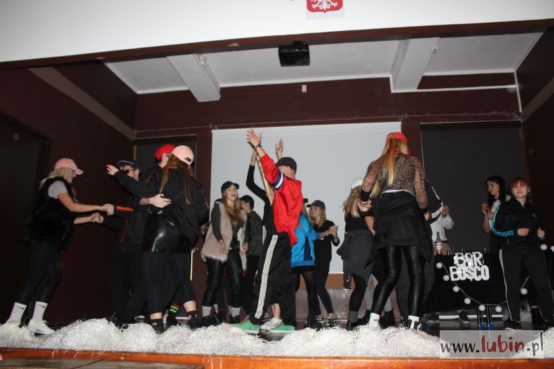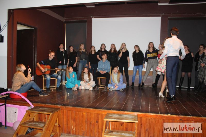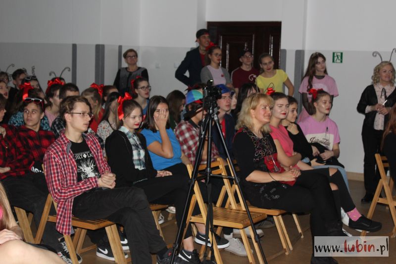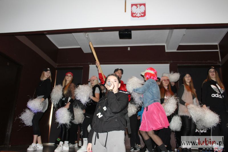 – To po części zabawa integracyjna. Mamy sześć klas i wszyscy biorą udział, i pierwszaki i starsi uczniowie. Fajne jest to, że wszyscy się angażują w przedstawienie, nie tylko przedstawiciele klas – mówi uczennica prowadząca imprezę. – A najlepsi się nauczyciele, którzy występują z nami na scenie – dodaje uśmiechnięta, wskazując tańczącą z pomponami się nauczycielkę od historii.