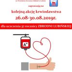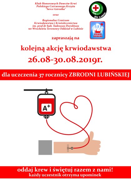 Klub Honorowych Dawców Krwi „Kropla życia” działający przy ZG Polkowice-Sieroszowice, zaprasza do uczczenia rocznicy Zbrodni Lubińskiej.