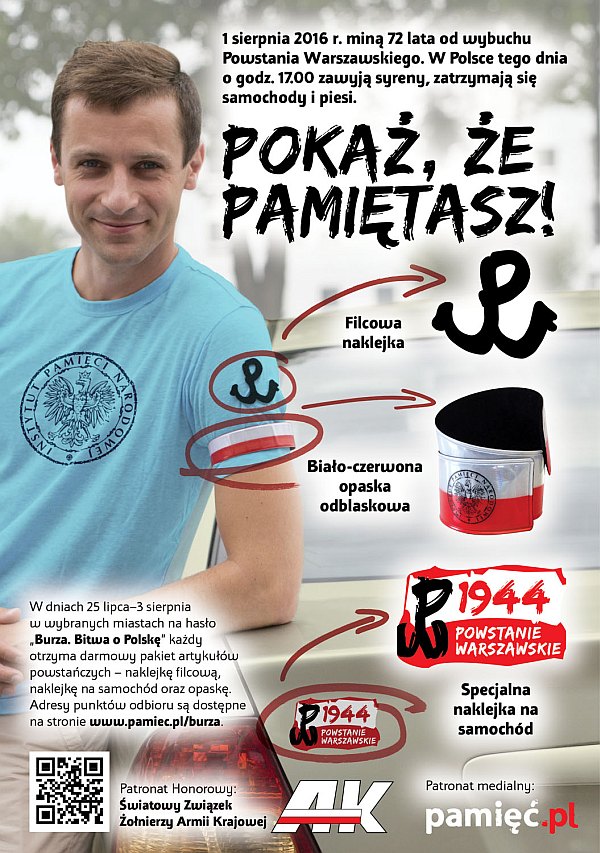 1 sierpnia miną 72 lata od wybuchu powstania warszawskiego. W Polsce tego dnia o godzinie 17 zatrzyma się ruch uliczny, zawyją syreny, by uczcić bohaterów tamtych dni. Specjalnie na tę okazję Instytut Pamięci Narodowej przygotował przedmioty przypominające o akcji „Burza” oraz powstaniu warszawskim. Będzie je rozdawać bezpłatnie.