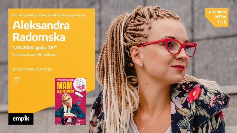 Autorka pojawi się w wirtualnym studiu Empiku, aby porozmawiać z internautami o swoim słodko-gorzkim, prześmiewczym dziele „Mam wątpliwość” (Wydawnictwo Wielka Litera). Rozmowę poprowadzi Weronika Wawrzkowicz.