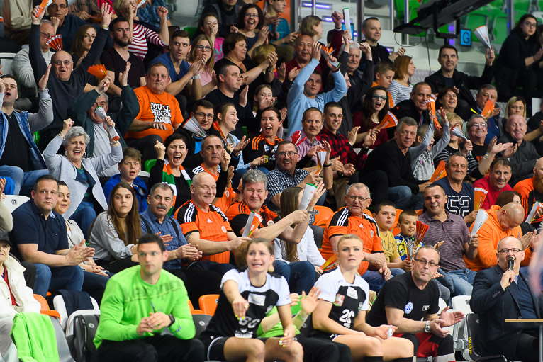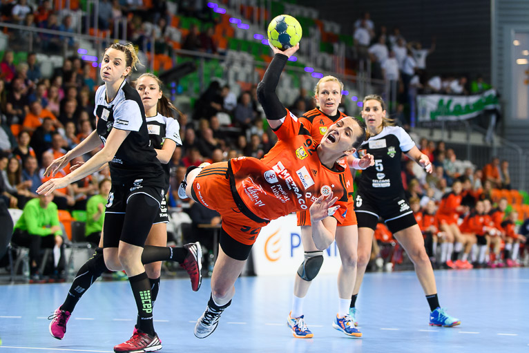 Obie drużyny przez blisko trzy minuty nie mogły zdobyć bramki. Wynik otworzyła Kinga Grzyb, a chwilę później do remisu doprowadziła Joanna Drabik. Już w siódmej minucie o czas poprosił trener gości. Metraco Zagłębie, głównie dzięki znakomitej postawie w bramce Moniki Maliczkiewicz i skutecznie kończonym kontratakom prowadziło 4:1. Chwilę później swoją drugą bramkę zdobyła Joanna Drabik, ale miedziowe szybko odpowiedziały. Podopieczne Bożeny Karkut, grając bardzo dobrze w każdym elemencie budowały swoją przewagę i po kwadransie prowadziły 9:4. Lubinianki wykorzystywały okazje również w osłabieniu, tak jak w 16. minucie, kiedy zdobyły dwie bramki. W 18. minucie na tablicy wyników było już 13:5, wykorzystując każdy najmniejszy błąd rywalek. Przed upływem dwudziestej minuty o drugi czas poprosił Neven Hrupec. Jego team przegrywał 5:14. Wskazówki trenera nie zdały się na wiele. Lubiński walec robił swoje i w 20. minucie było już „dychą”. Ostatnie dziesięć minut pierwszej połowy to lekka przewaga Selgrosu, który zaczął odrabiać straty i zniwelował je do sześciu trafień. Sama końcówka tej części spotkania to znów dominacja miedziowych i do przerwy było 19:11.
