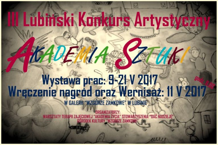 Wszystkie dzieła, jakie prezentowane będą w galerii, stworzyły osoby niepełnosprawne. Powstały one na Lubiński Konkurs Artystyczny przygotowany już po raz trzeci przez Warsztaty Terapii Zajęciowej „Akademia Życia” Stowarzyszenia „Dać Nadzieję” wraz z Ośrodkiem Kultury Wzgórze Zamkowe. W tym roku w konkursie wzięło udział 79 uczestników z 16 organizacji, warsztatów terapii zajęciowej i szkół.