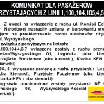 Natomiast dla autobusów numer 105, 5 wyłączone zostały z ruchu przystanki: Legnicka (oba kierunki), przejście podziemne (oba kierunki) oraz kładka KEN (oba kierunki).