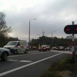 Awaria rogatek na przejeździe kolejowym przy ulicy Legnickiej. Pozostają opuszczone od dłuższego czasu. W obie strony utworzył się ogromny korek. Na miejscu jest już monter, który usuwa usterkę oraz policjanci, kierujący ruchem.