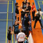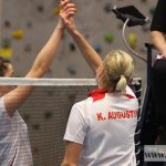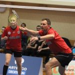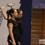 W rywalizacji debla pań, po jednej stronie oglądaliśmy siostry Agnieszkę i Anetę Wojtkowskie, a po przeciwnej stronie siatki duet Wiktoria Dąbczyńska i Aleksandra Goszczyńska. W pierwszym secie młode pokolenie badmintonistek dało się we znaki siostrom, natomiast już drugi set był prowadzony pod dyktando Agnieszk i Anety, które obroniły zeszłoroczny tytuł mistrzowski. – Na tym turnieju cały czas miałyśmy nerwowe te pierwsze sety. Poprzednie mecze też wyglądały podobnie, a drugie sety już wygrywałyśmy pewnie. Szczerze, jest nam już coraz ciężej, bo młode dziewczyny nas doganiają. Życzę im dalszego rozwoju i dobrego szkolenia – podkreśla Aneta Wojtkowska.