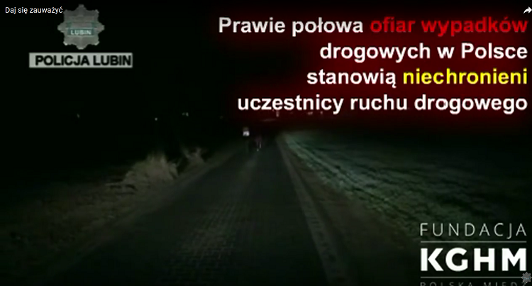 Aby zobrazować jak to wygląda z perspektywy kierowcy, lubińscy policjanci przygotowali spot edukacyjny, na którym widoczne są dwie osoby. Jedna mająca kamizelkę odblaskową, druga bez żadnego elementu odblaskowego. Jak widać dodatkowe metry pozwolą kierowcy wyhamować i bezpiecznie ominąć pieszego. Z pewnością jesienią i zimą, kiedy wcześnie zapada zmrok i warunki atmosferyczne ulegają pogorszeniu, piesi na drogach stają się słabo widoczni, zatem prawdopodobieństwo ich potrącenia przez pojazd znacząco wzrasta.