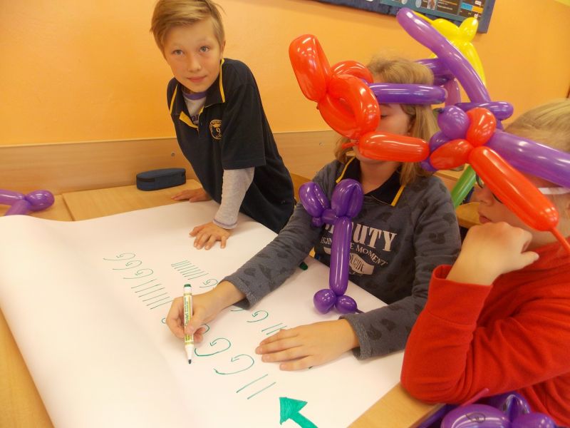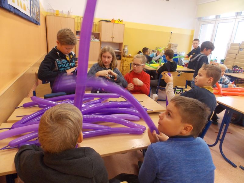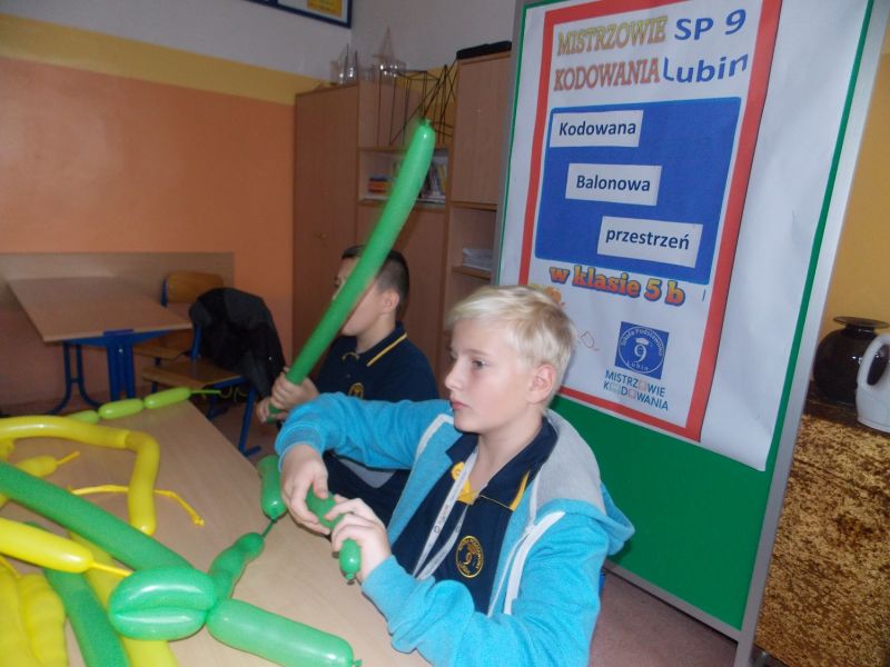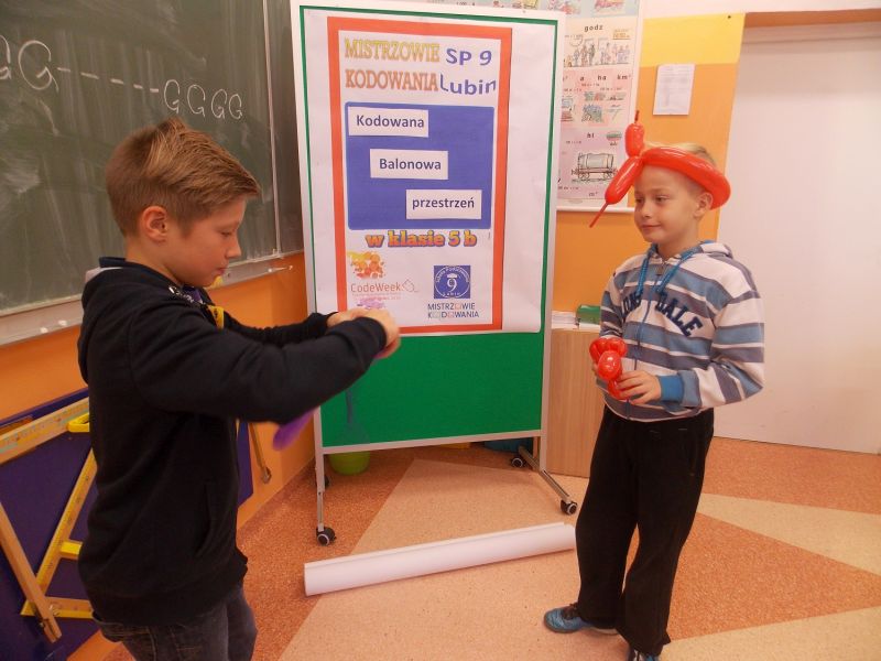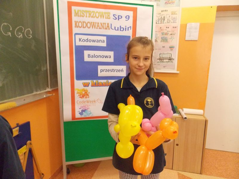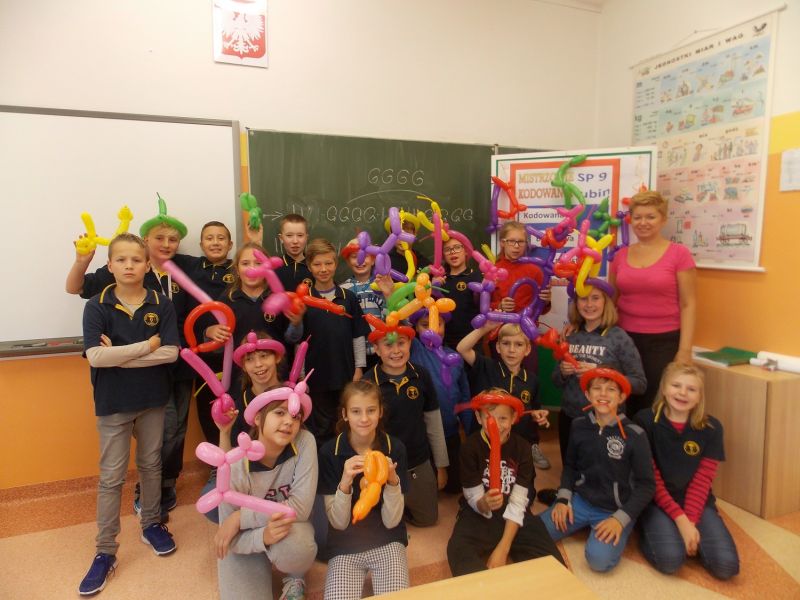 – Uczniowie uczą się programować w języku Scratch. Nie brakuje również kodowania offline. W czasie lekcji z wychowawcą dzieci z 4a grały w strategiczne gry, które nawiązują do podstaw kodowania. Na matematyce w 5b realizowany był projekt „Kodowana balonowa przestrzeń”, którego pomysł zrodził się we współpracy z aktywnymi rodzicami. Uczniowie w grupach przygotowali balony i dowiedzieli się, jak stworzyć balonowego kotka. Sami byli autorami figur przestrzennych. Na koniec każda grupa zapisała kod, czyli prosty algorytm skręcania balonów. Takie zajęcia uczą współpracy w grupie i doskonale rozwijają fantazję i konstruktywne myślenia. Była to też okazja do świetnej zabawy, która przeniosła się na korytarz w czasie przerwy – mówi Krystyna Węgrzyn nauczycielka matematyki i zajęć komputerowych w SP 9 w Lubinie.