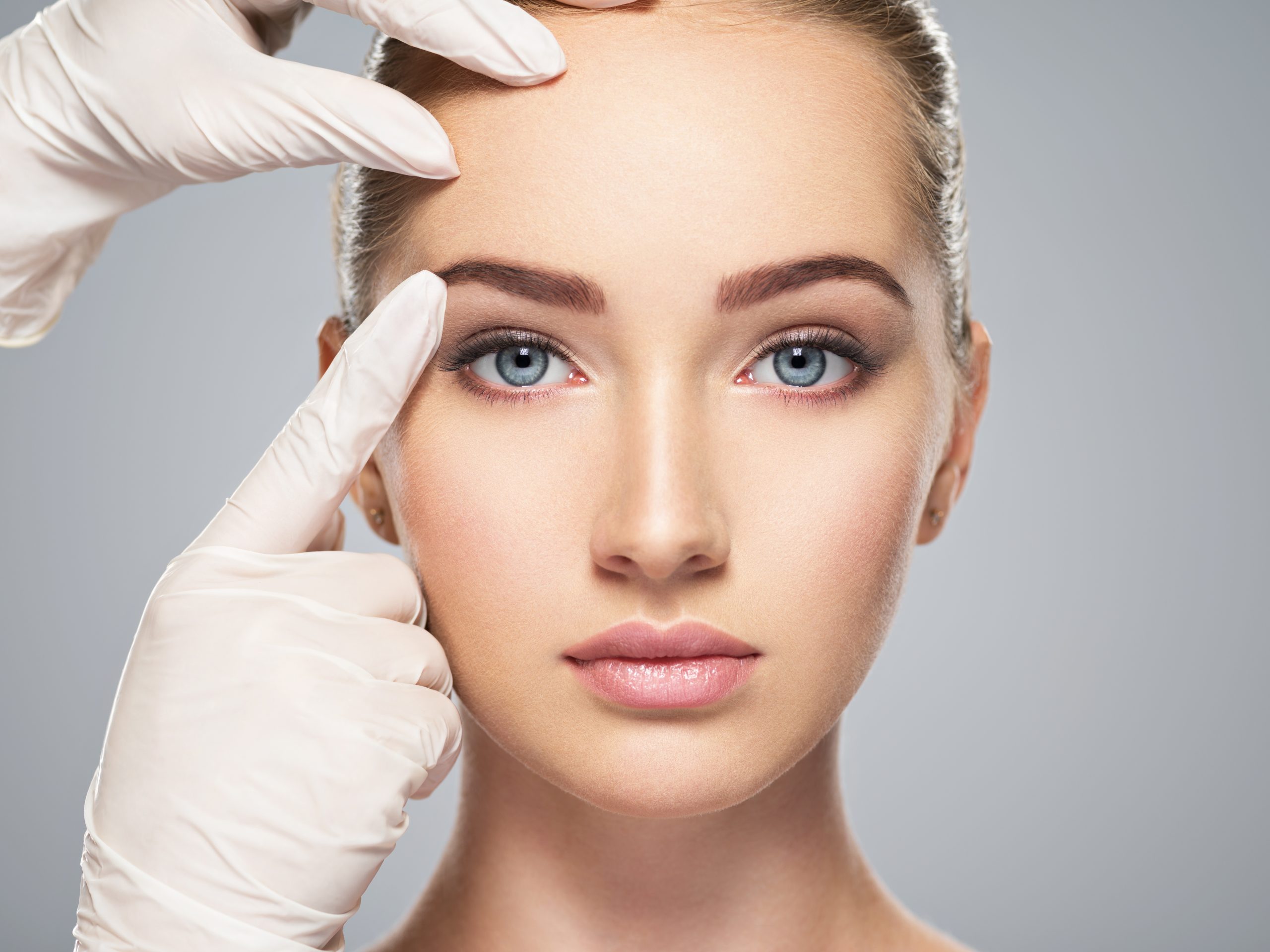 Beautician touching woman face.