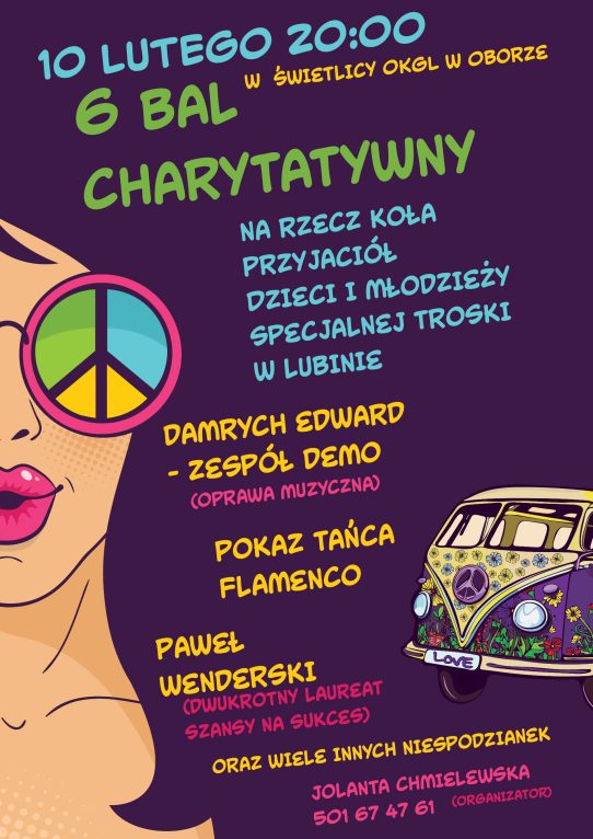 Tym razem w klimacie dzieci-kwiatów odbędzie się szósty już bal charytatywny. Każdy, kto chce potańczyć, a przy okazji pomóc podopiecznym z Koła Dzieci i Młodzieży Specjalnej Troski w Lubinie, będzie mile widziany na zabawie.