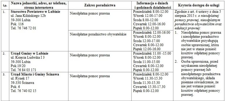 Jednostki nieodpłatnego poradnictwa prawnego dla mieszkańców powiatu lubińskiego