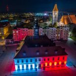 Litery na stacji kolejowej świecą w barwach narodowych już od kilku nocy, dziś dołączył do nich lubiński ratusz.