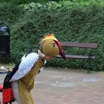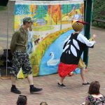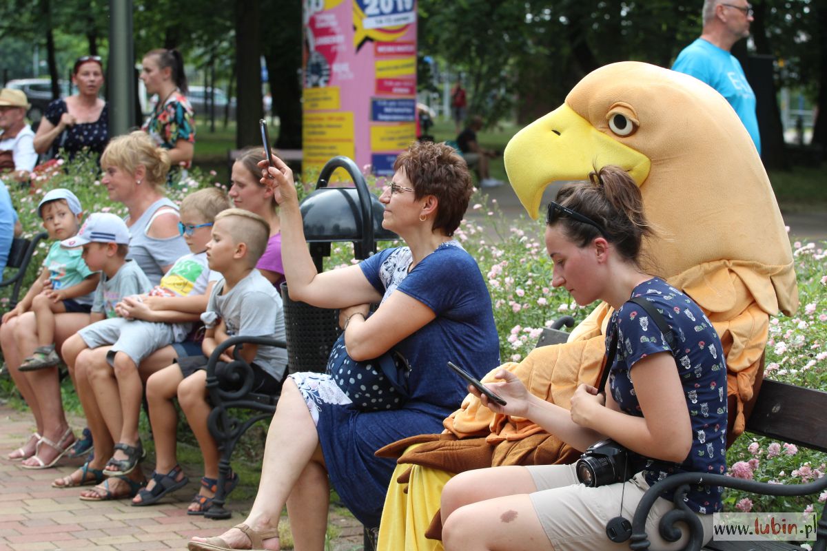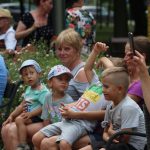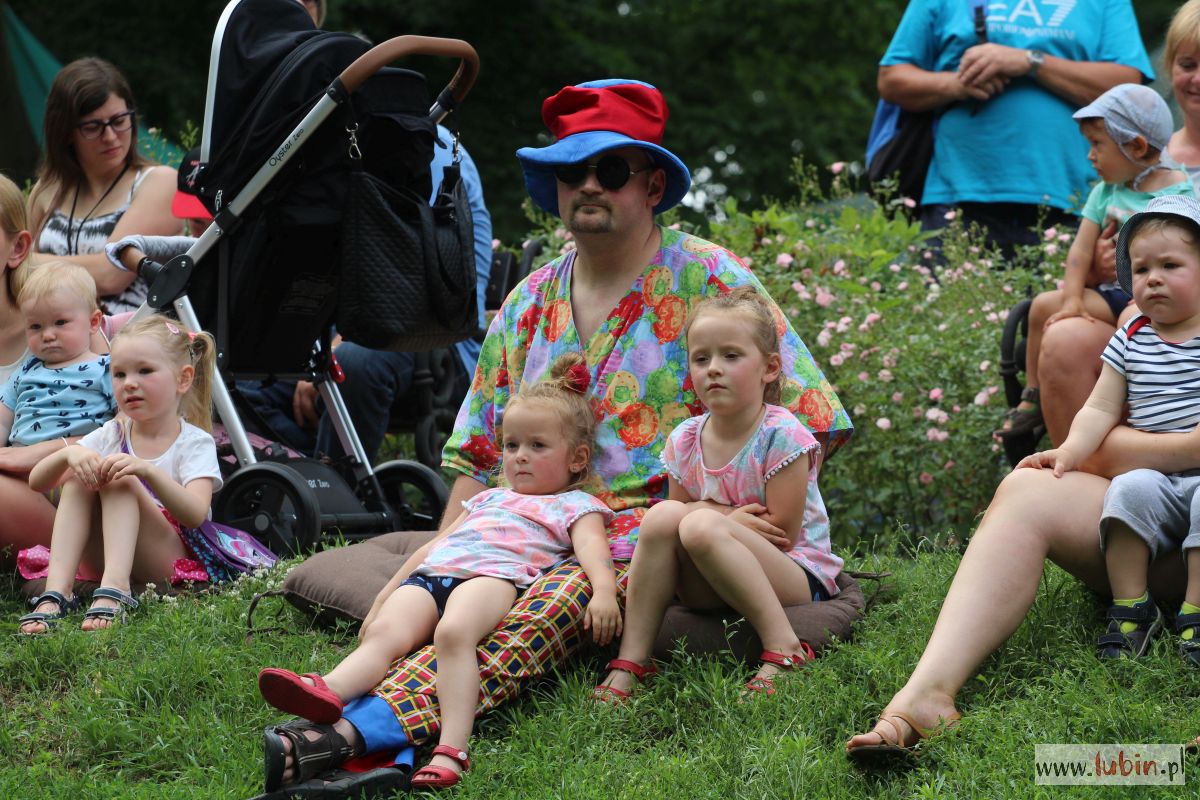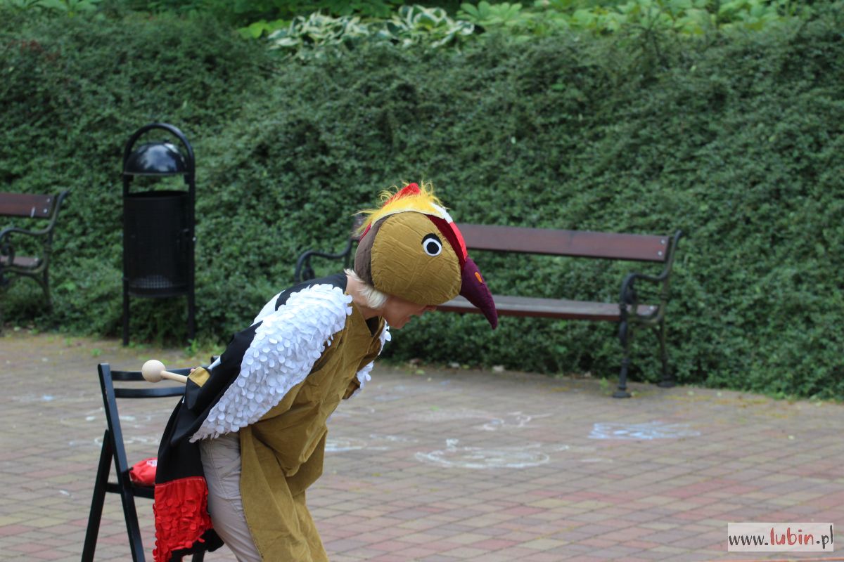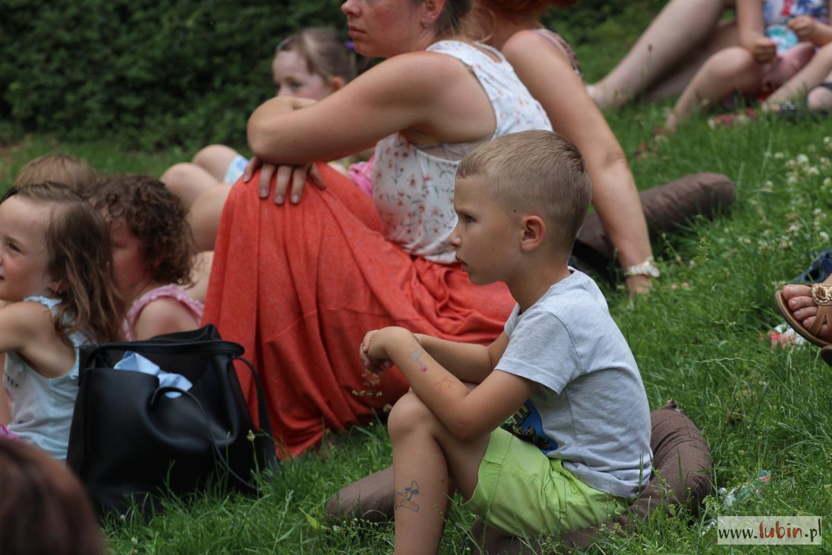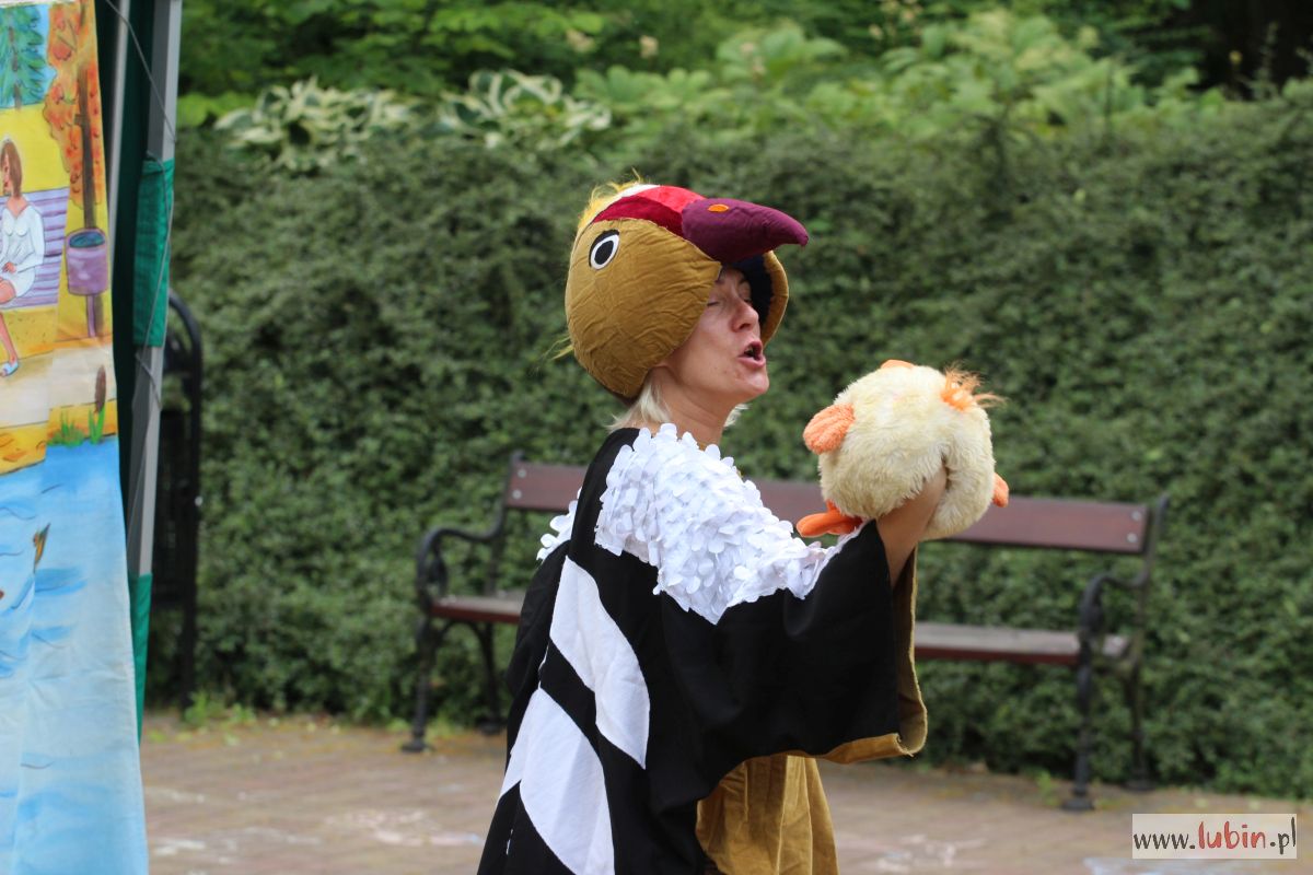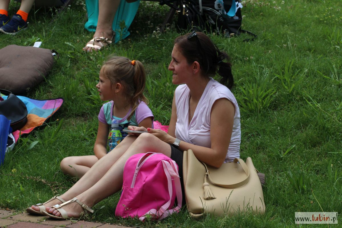 W parku spotkaliśmy nie tylko mole książkowe, ale całe rodziny z dziećmi. Niektórzy przyszli sporo przed czasem, żeby zająć najlepsze miejsca na oglądanie spektaklu, bo przed dziećmi zaprezentował się teatr Duet z Krakowa. Wystąpił z przedstawieniem „Bajka o dzięciole”.