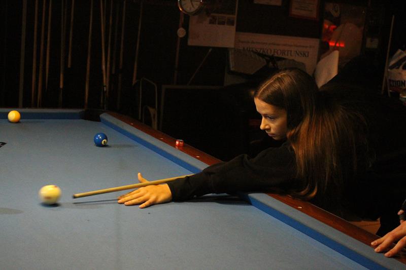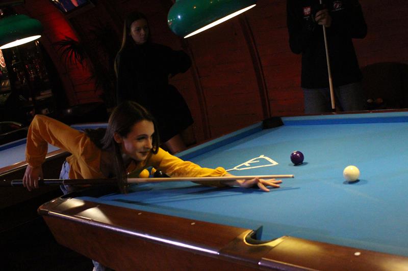 – Zobaczyłam ogłoszenie na stronie obecnych tu trenerów i chciałam zobaczyć jak to jest grać w bilard. Chciałam się także nauczyć podstaw gry w tą dyscyplinę, gdyż wcześniej takiej możliwości nie miałam. Jeden z trenerów pokazał mi najprostsze elementy tego sportu, począwszy od postawy. Sport zdecydowanie mnie zainteresował i na pewno wrócę na lekcje, choć nie myślę w przyszłości o byciu zawodniczką – mówi Inga Stępień, uczestniczka zajęć.