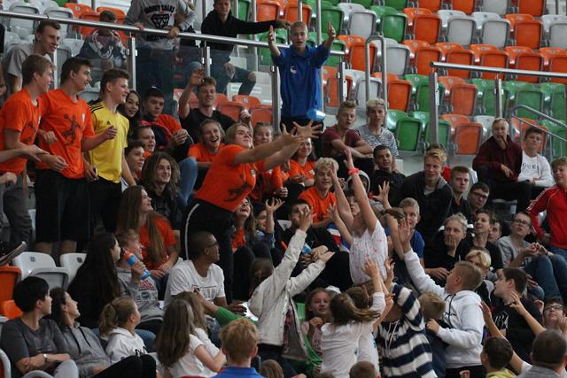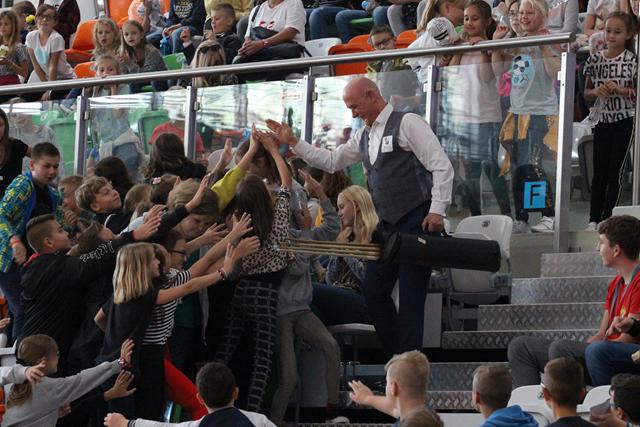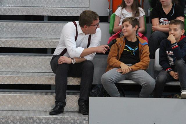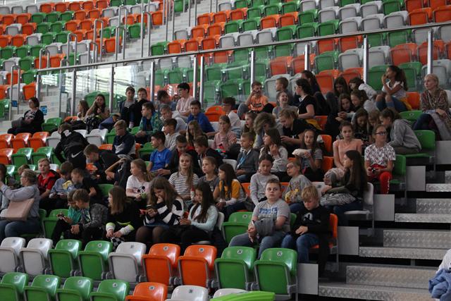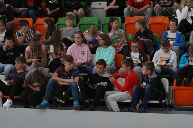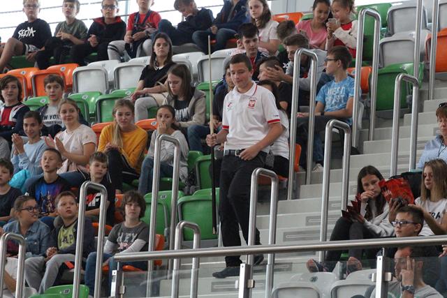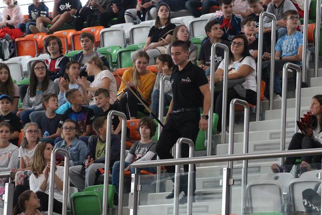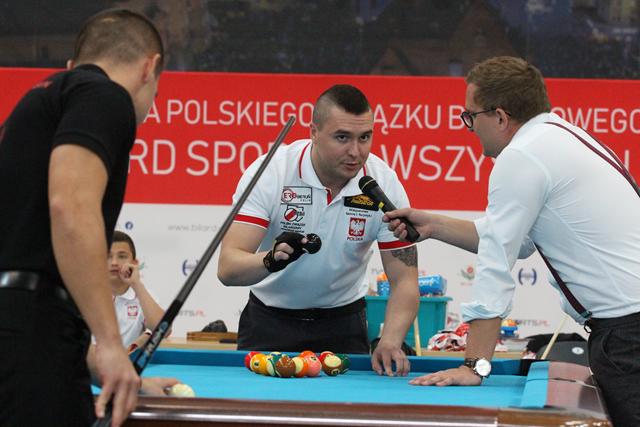 Międzyczasie lubiński bilardziści wraz z Bogusławem Fortuńskim tłumaczyli zasady gry w odmianę 8 czy 9-bil. Celne wbijanie bil do łuzy w ciekawym stylu wywoływało falę entuzjazmu na trybunach i gratulacje okazywane oklaskami. Quiz wiedzy o cenach kijów bilardowych czy stołów, a także ile powinien dziennie trenować zawodnik, okazał się strzałem w dziesiątkę. Wielu młodych ludzi podawało odpowiedzi myląc się bardzo nieznacznie. I tak dowiedzieliśmy się, że dla początkującego zawodnika kij można zakupić w kwocie około 200 zł. Im dalej w las, tym drożej. Dla profesjonalnych graczy ten niezbędny „bilardowy oręż” kosztuje już 5 000 zł.