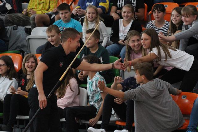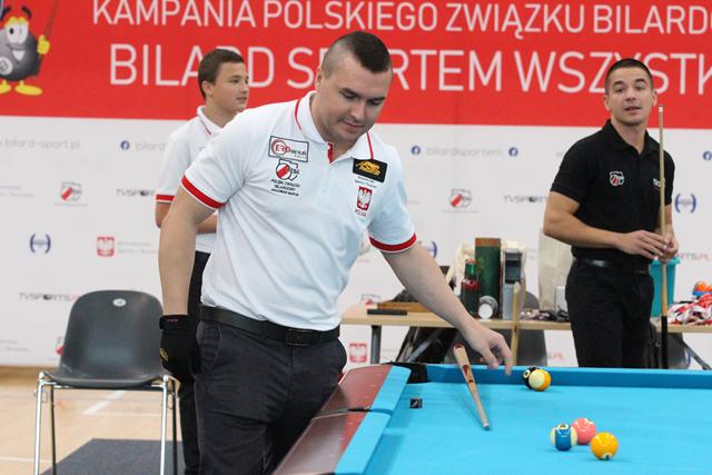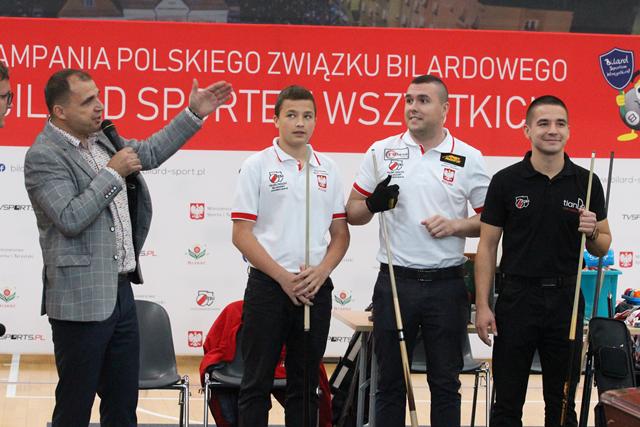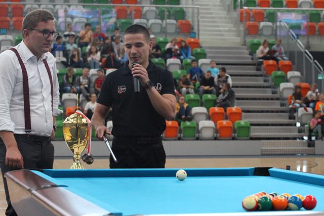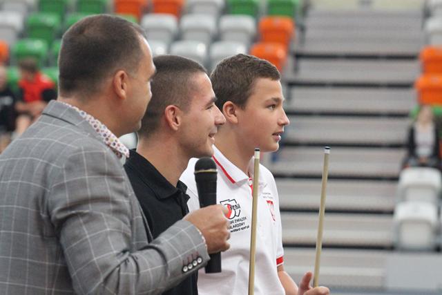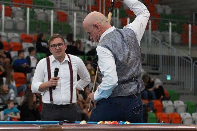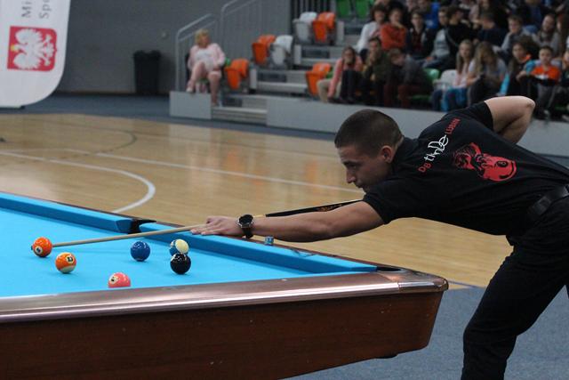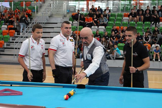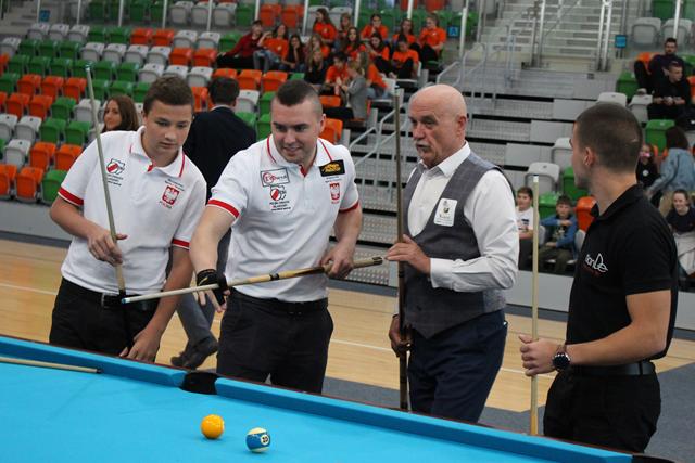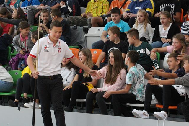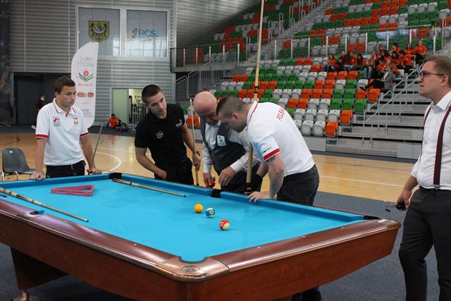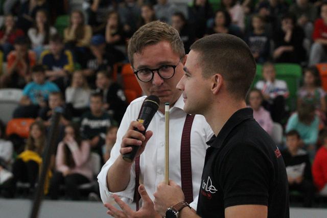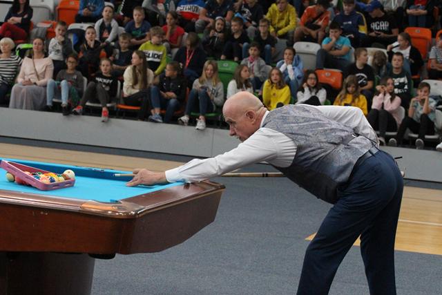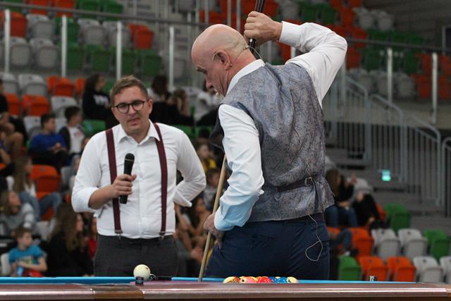 Na środku parkietu Hali Regionalnego Centrum Sportowego zebrani sympatycy bilardowych rozgrywek, bo jak się okazało większość młodzieży miała styczność z tą dyscypliną sportu, mistrz świata w trikach bilardowych Bogdan Wołkowski, a także reprezentanci DSB Lubin w osobach Mieszka, Marcela i Wiktora Fortuńskich prezentowali swoje umiejętności.