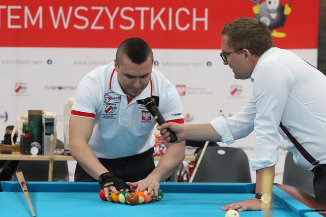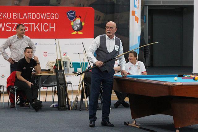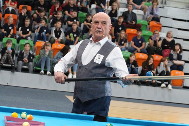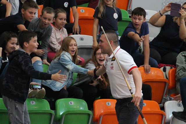 Po początkowych atrakcjach przyszedł czas na triki bilardowe. Te, wykonał nie kto inny jak gwiazda dnia – Bogdan Wołkowski, a więc trener kadry narodowej, która podczas mistrzostw Europy zdobyła kilka medali, a także mistrz świata w trikach artystycznych czy snookerowych. – Ja sam lubię patrzeć na triki bilardowe, ale także wymyślać i robić. Najbardziej mnie cieszy to, jak zrobi się trik i wszystkim się to podoba. Mam zawsze coś nowego – podkreśla Bogdan Wołowski.