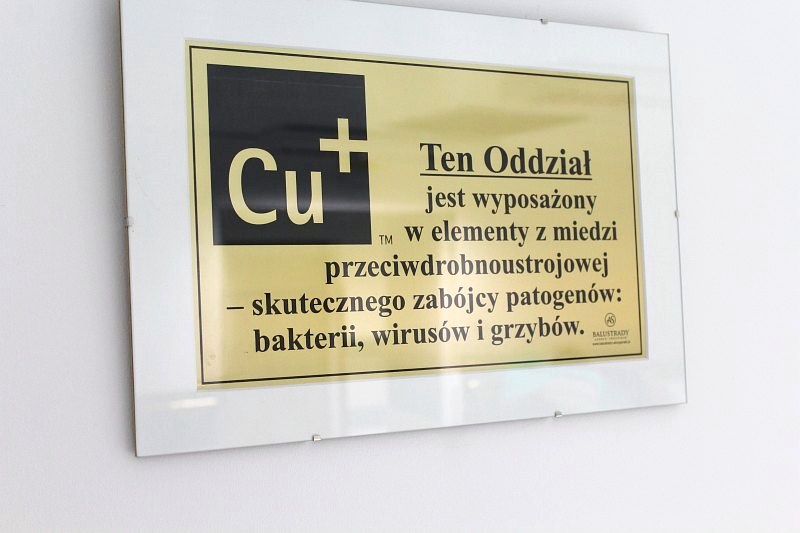 Nie będzie to pierwsze miejsce w tym szpitalu z miedzianymi elementami. Miedź została już wykorzystana na przykład na oddziale laryngologicznym. – Są tu między innymi miedziane barierki, łóżka z elementami miedzi oraz stojaki do kroplówek. Wszystkie te elementy są bezpieczne mikrobiologicznie. Dbamy o bezpieczeństwo pacjentów nie tylko w sensie fizycznym, ale i mikrobiologicznym – dodaje Marzena Łokietko, naczelna pielęgniarka szpitala i pełnomocnik zintegrowanego systemu zarządzania.