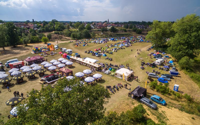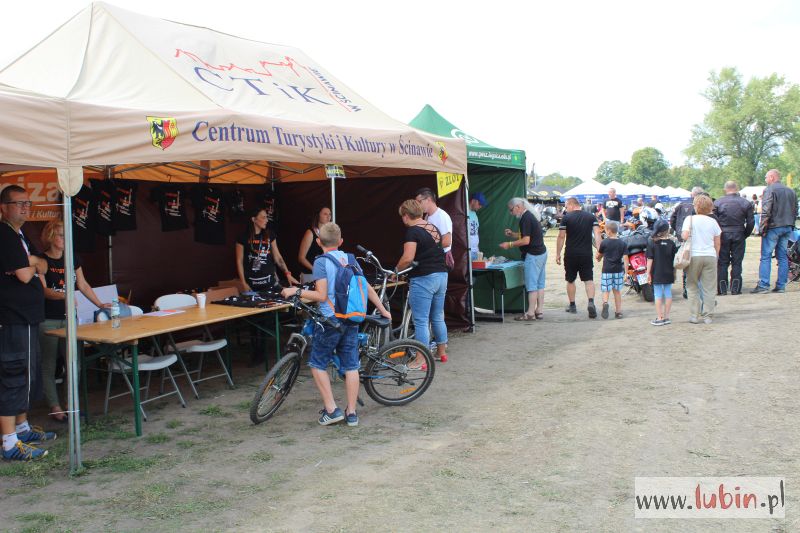 Takich zakręconych na punkcie motocykli osób znajdziemy w Ścinawie dziś całkiem sporo. Przyjechali z okolicznych miejscowości i z dalszych stron Polski. Na polu namiotowym spotykamy grupę z Legnicy: Dragon’s Team, działającą przy hucie miedzi Legnica.