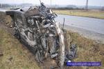 Wyglądało bardzo groźnie. 30-latek kierujący BMW stracił panowanie nad pojazdem i wjechał do przydrożnego rowu. Przód samochodu został zmiażdżony.