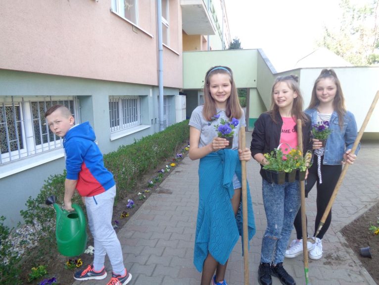 – Uważamy, że pomysł jest bardzo fajny! – mówią uczniowie klas 6b i 7c. – Teraz będzie wokół szkoły jeszcze bardziej kolorowo i ładnie. Przyjemnie dzisiaj popracować na dworze, bo świeci słońce i jest ciepło, i robimy coś pożytecznego. Chyba dookoła żadnej szkoły nie będzie tylu kwiatów, co u nas! – dodają z uśmiechem i dumą zbratani ze szkołą i wiosną ósemkowicze.