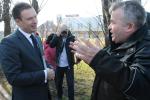 Najpierw Bronkobus zatrzymał się przy PKS-ie na ulicy Marii Skłodowskiej-Curie. Tam czekała na niego już grupa mieszkańców Lubina. – Przyjechaliśmy promować naszego kandydata na prezydenta. Zbieramy podpisy poparcia. W powiecie lubińskim zebraliśmy ich już tysiąc. Liczymy, że prezydent Komorowski odwiedzi wkrótce również Lubin – zaczął Piotr Borys, ale jego słowa zagłuszyły krzyki lubinian, którzy chcieli między innymi wiedzieć, czy rząd zrezygnuje z podatku od kopalin i tak wysokiego wieku emerytalnego.