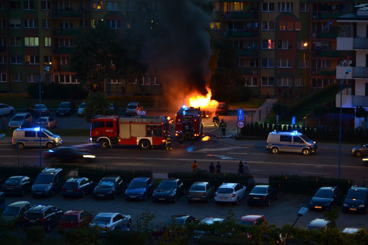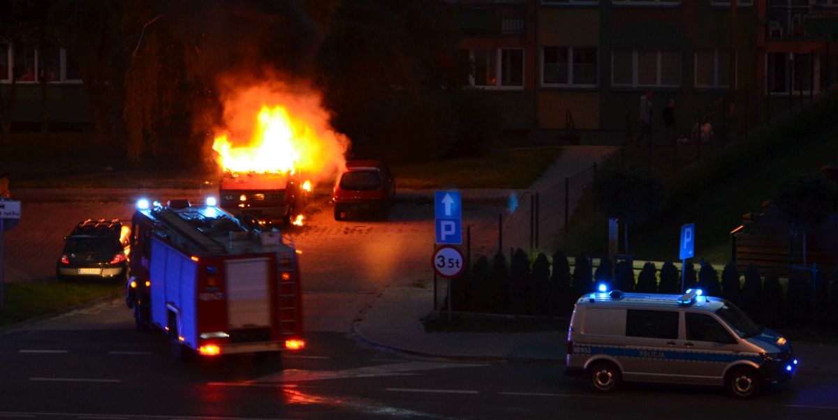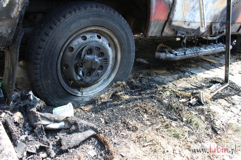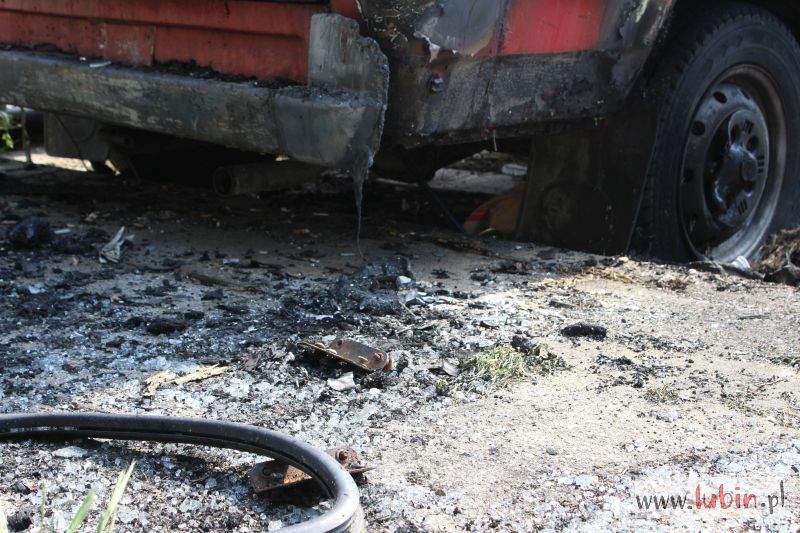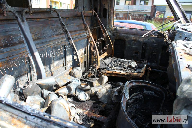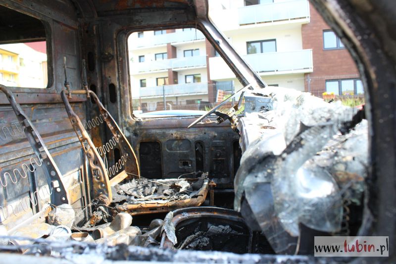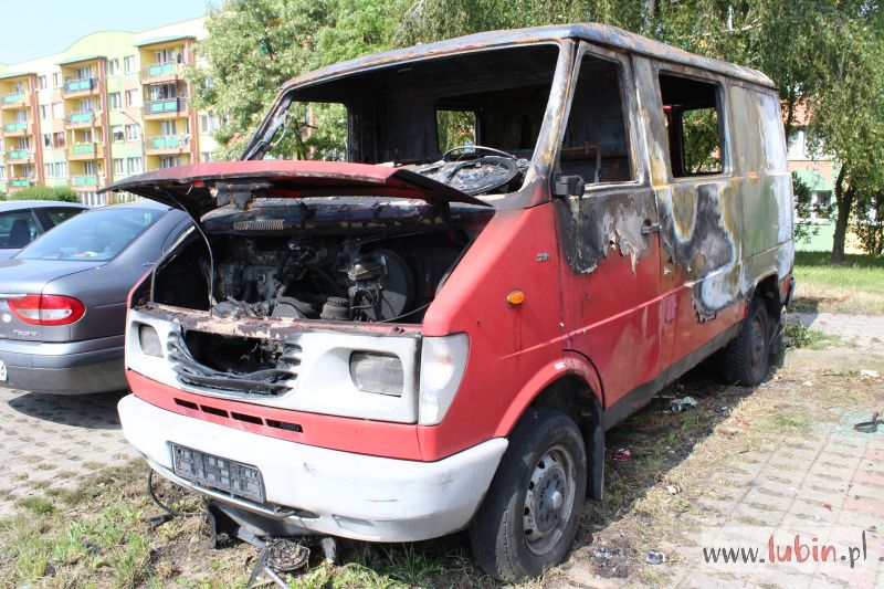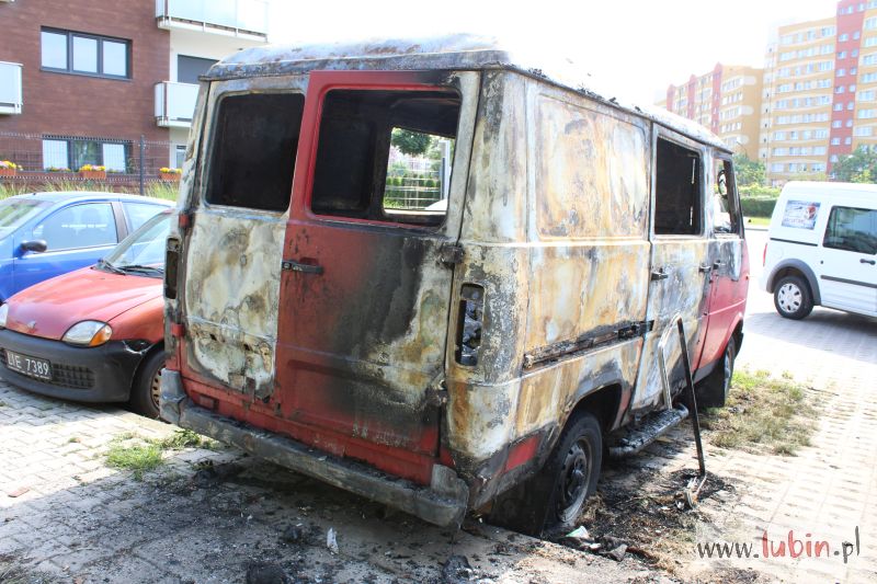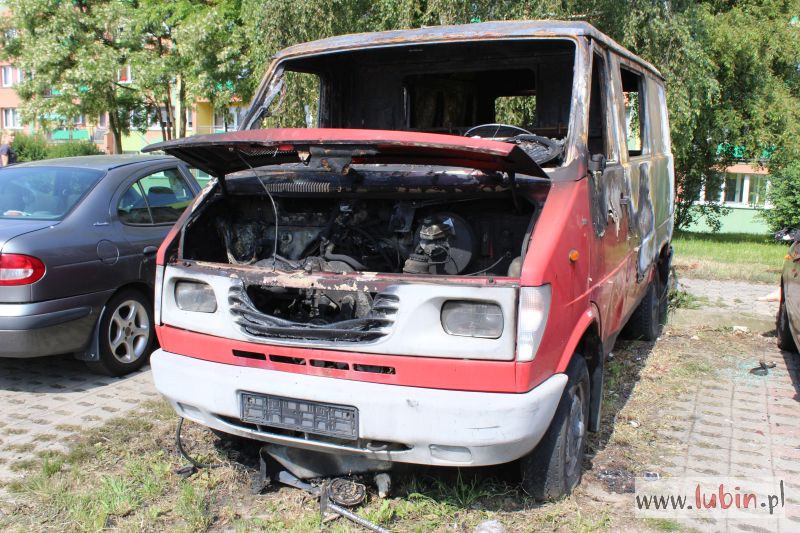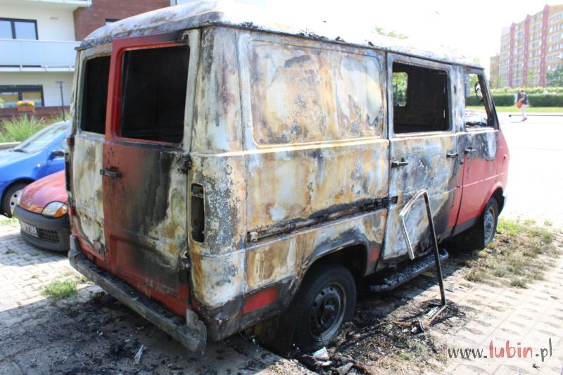 Lubińska policja informację o palącym się samochodzie otrzymała około godziny 21.15. Płonął stojący od dawna na parkingu przy ulicy Wyszyńskiego czerwony bus marki Lublin. Auto prawdopodobnie było niesprawne, mieszkali w nim bezdomni.