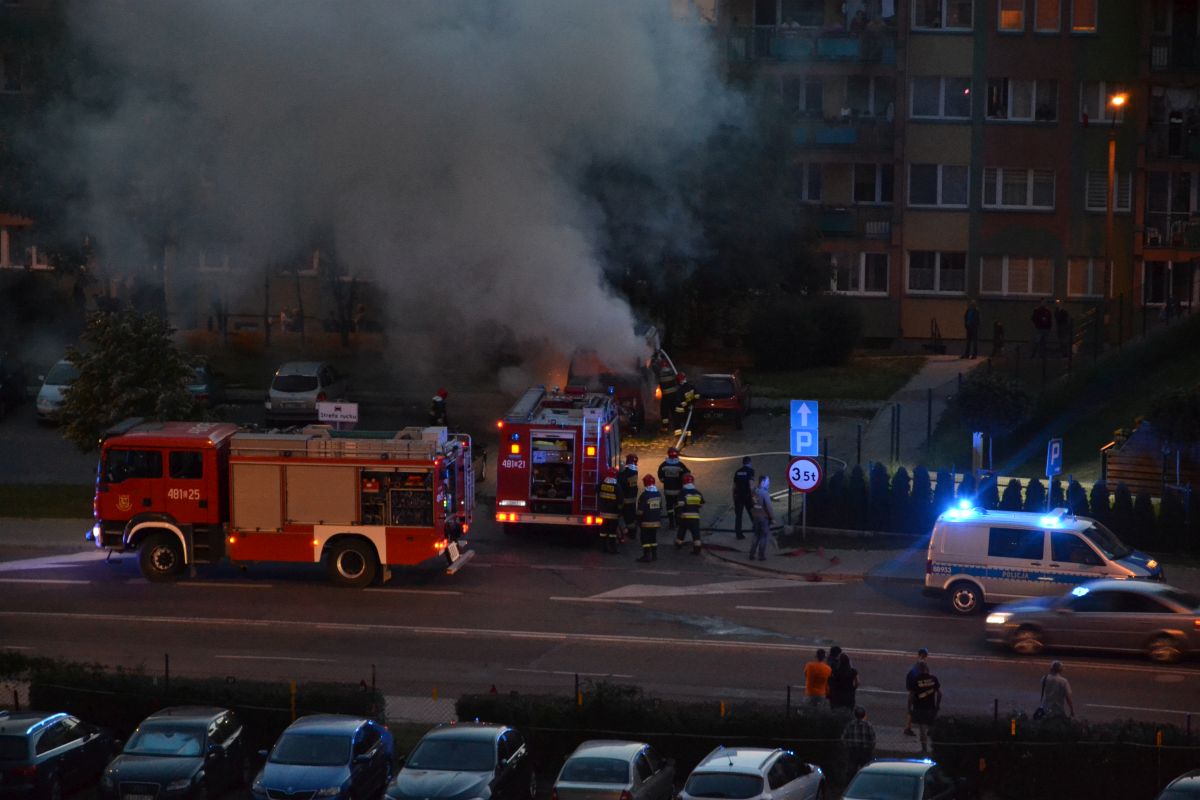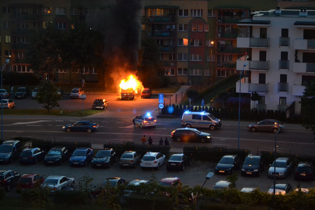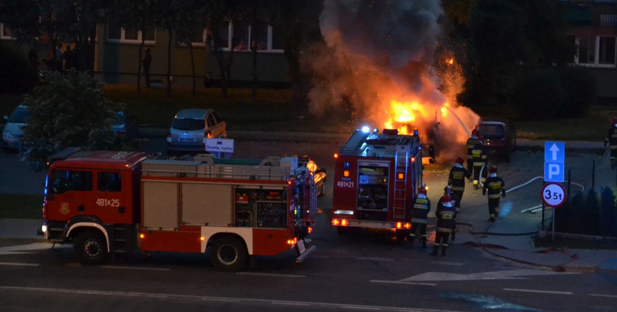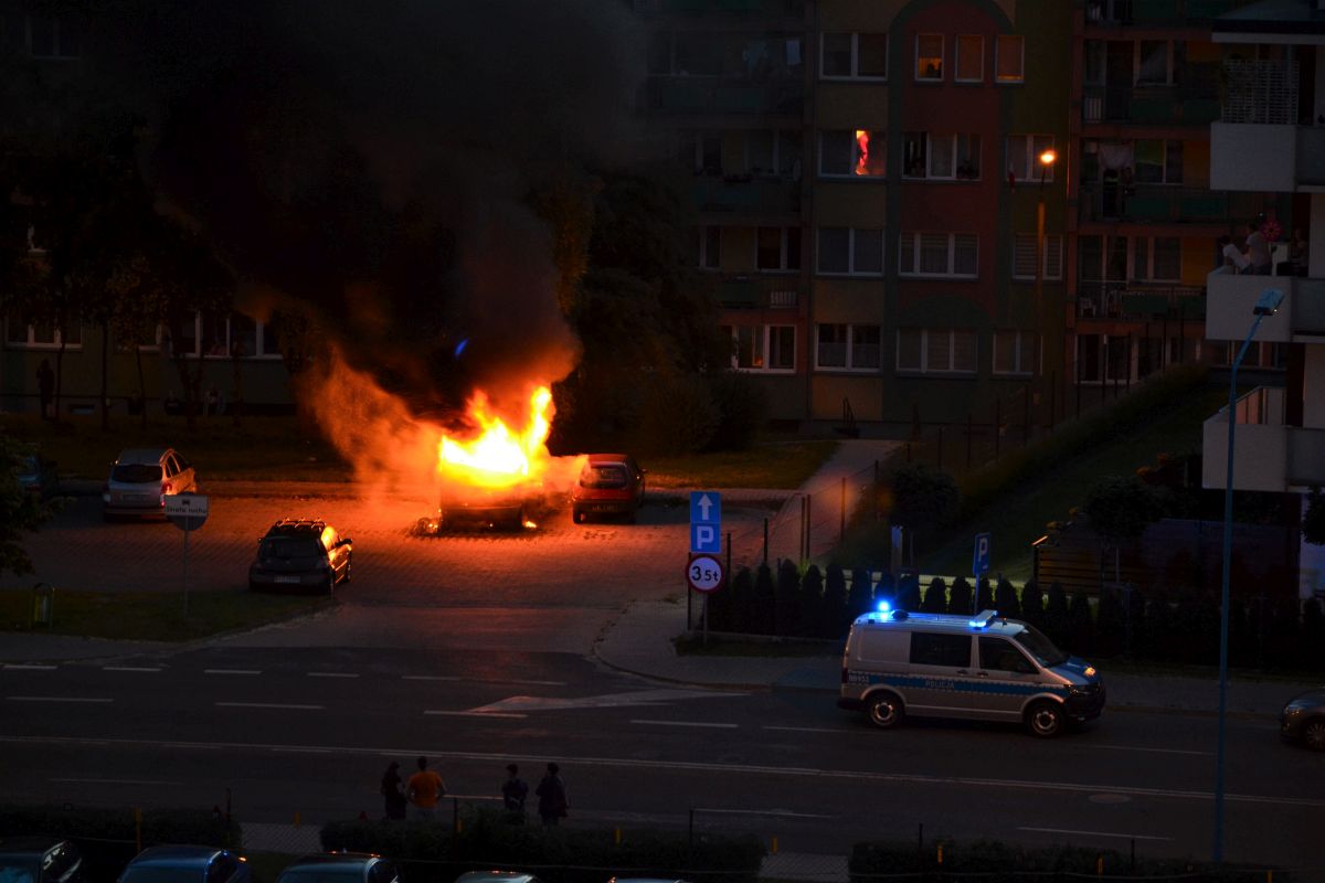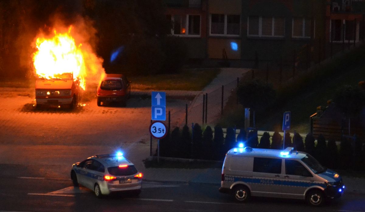 Lubińska policja informację o palącym się samochodzie otrzymała około godziny 21.15. Płonął stojący od dawna na parkingu przy ulicy Wyszyńskiego czerwony bus marki Lublin. Auto prawdopodobnie było niesprawne, mieszkali w nim bezdomni.