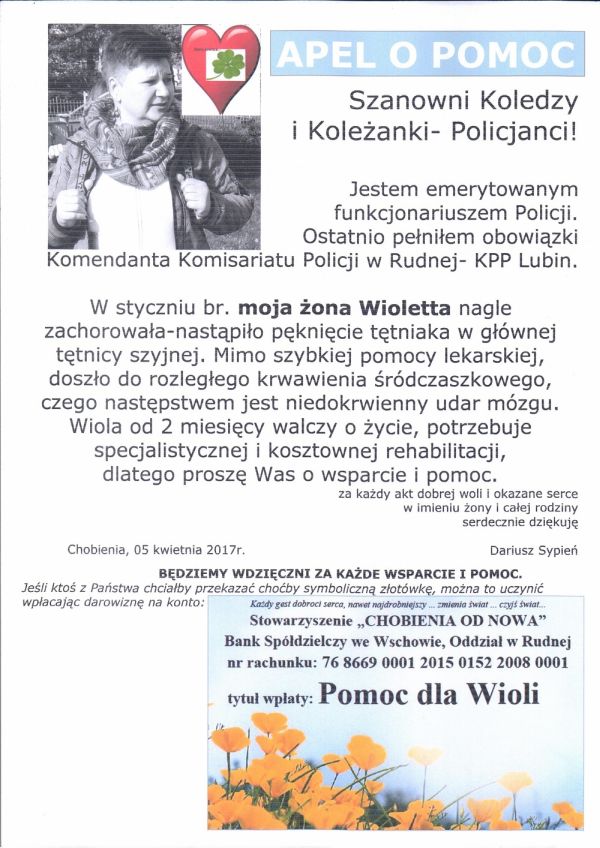 Mimo tego co usłyszał od lekarza, nie poddał się i postanowił walczyć o życie i zdrowie żony. Leczenie oraz rehabilitacja są jednak bardzo kosztowane, dlatego przyjaciele Dariusza i Wioletty Sypieniów, postanowili pomóc, organizując zbiórkę pieniędzy. Liczą, że dzięki wsparciu mieszkańców regionu, uda się przywrócić pani Wioletcie sprawność i poprzednie życie.