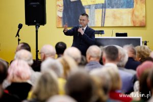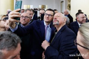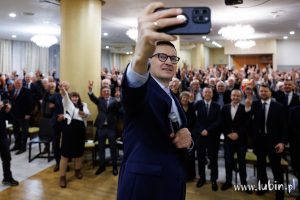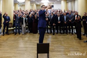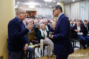 – Tych inwestycji było na 150 miliardów złotych. W samym tylko Lubinie i w powiecie lubińskim to była kwota 500-600 milionów złotych. A wiecie, ile jest zaplanowane dla tego powiatu na kolejny rok? 5 milionów. Widzicie różnicę? Gdzie są ludzie, którzy się na to będą oburzać? Gdzie jest gniew ludu, gniew narodu, poruszenie, które zmusi ten rząd do reakcji? Jest w waszych rękach – podkreślał, deklarując jednocześnie: – Będę toczył codziennie jedną bitwę z tym złym rządem, reżimem. Nie ma mojej zgody na de facto kolonizowanie polskiej gospodarki przez zachodnioeuropejskie koncerny, niszczenie polskiego rolnictwa w wyniku umowy Mercosur. Nasz program, program Prawa i Sprawiedliwości jest programem bardzo nowoczesnego, szybkiego rozwoju. W głębszym sensie składa się z dwóch fundamentalnych części. To jest jednocześnie moja filozofia patrzenia na prawicę, na Prawo i Sprawiedliwość. Wszyscy jesteśmy polskimi patriotami. Kochamy polską historię, naszych bohaterów. Kochamy polskie dzieje, flagę biało-czerwoną, godło. Jesteśmy z tego wszystkiego dumni. Jesteśmy dumnymi Polakami. To jest nasza tożsamość i to jest jedno z dwóch płuc, którymi oddychamy. To jest też moje credo polityczne. Wierzę w taką prawicę, która będzie dumna z Polski, z wiary chrześcijańskiej jako podstawy, jako fundamentu naszej cywilizacji. We współczesnym świecie nie ma suwerenności, nie ma silnego państwa. Czas spokoju się skończy. Teraz musimy mieć sprawny, dobry rząd, który rozumie te wszystkie zjawiska gospodarcze, rozumie, co się z czego bierze, dba o polskich przedsiębiorców, tych państwowych i tych prywatnych, dba o to, żeby gigantyczny budżet zbrojeniowy, szedł na polskie przedsięwzięcia. Wszystko to musi służyć Polsce. I wiemy, jak to zrobimy, ale dzisiaj ktoś inny rządzi i widzę, jak przez palce przeciekają niestety te wszystkie szanse. Dlatego musimy się zjednoczyć – zwrócił się Mateusz Morawiecki do zgromadzonych w sali osób.