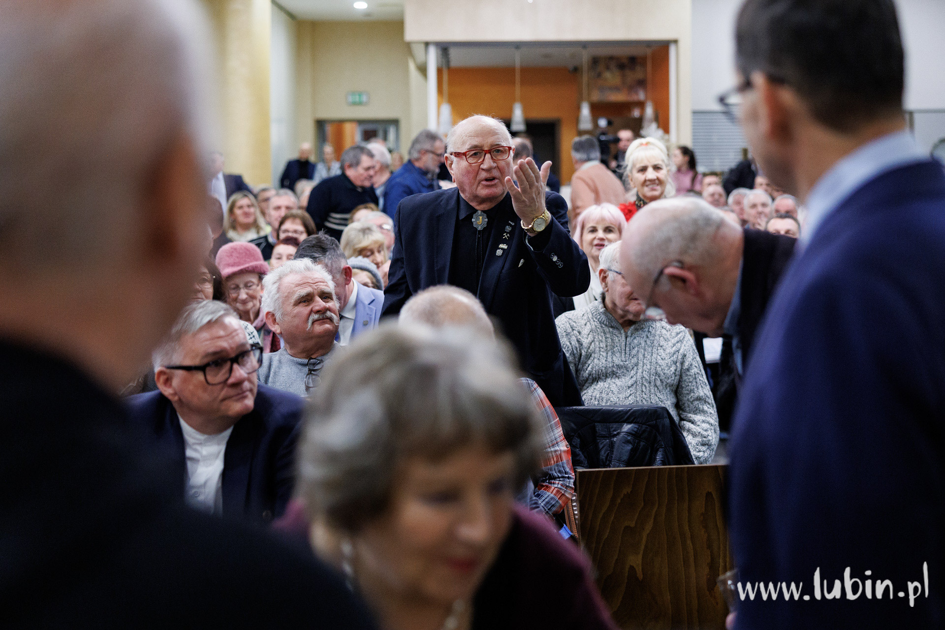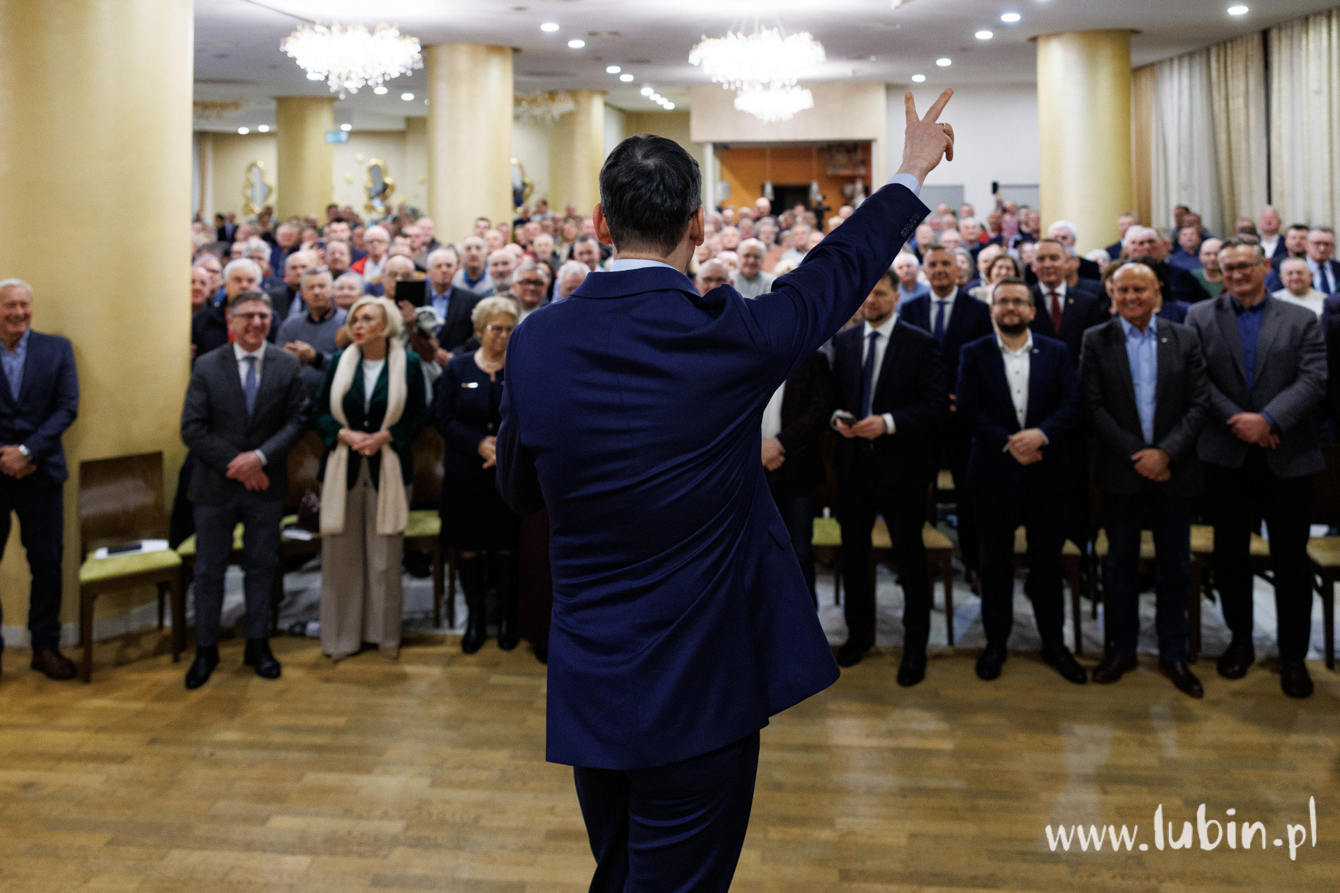 – Tych inwestycji było na 150 miliardów złotych. W samym tylko Lubinie i w powiecie lubińskim to była kwota 500-600 milionów złotych. A wiecie, ile jest zaplanowane dla tego powiatu na kolejny rok? 5 milionów. Widzicie różnicę? Gdzie są ludzie, którzy się na to będą oburzać? Gdzie jest gniew ludu, gniew narodu, poruszenie, które zmusi ten rząd do reakcji? Jest w waszych rękach – podkreślał, deklarując jednocześnie: – Będę toczył codziennie jedną bitwę z tym złym rządem, reżimem. Nie ma mojej zgody na de facto kolonizowanie polskiej gospodarki przez zachodnioeuropejskie koncerny, niszczenie polskiego rolnictwa w wyniku umowy Mercosur. Nasz program, program Prawa i Sprawiedliwości jest programem bardzo nowoczesnego, szybkiego rozwoju. W głębszym sensie składa się z dwóch fundamentalnych części. To jest jednocześnie moja filozofia patrzenia na prawicę, na Prawo i Sprawiedliwość. Wszyscy jesteśmy polskimi patriotami. Kochamy polską historię, naszych bohaterów. Kochamy polskie dzieje, flagę biało-czerwoną, godło. Jesteśmy z tego wszystkiego dumni. Jesteśmy dumnymi Polakami. To jest nasza tożsamość i to jest jedno z dwóch płuc, którymi oddychamy. To jest też moje credo polityczne. Wierzę w taką prawicę, która będzie dumna z Polski, z wiary chrześcijańskiej jako podstawy, jako fundamentu naszej cywilizacji. We współczesnym świecie nie ma suwerenności, nie ma silnego państwa. Czas spokoju się skończy. Teraz musimy mieć sprawny, dobry rząd, który rozumie te wszystkie zjawiska gospodarcze, rozumie, co się z czego bierze, dba o polskich przedsiębiorców, tych państwowych i tych prywatnych, dba o to, żeby gigantyczny budżet zbrojeniowy, szedł na polskie przedsięwzięcia. Wszystko to musi służyć Polsce. I wiemy, jak to zrobimy, ale dzisiaj ktoś inny rządzi i widzę, jak przez palce przeciekają niestety te wszystkie szanse. Dlatego musimy się zjednoczyć – zwrócił się Mateusz Morawiecki do zgromadzonych w sali osób.