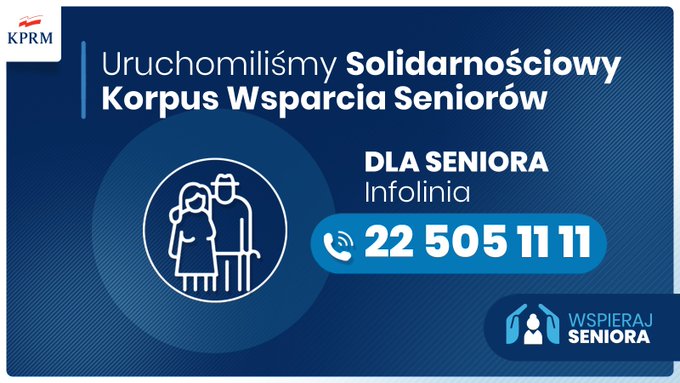 W ramach Solidarnościowego Korpusu Wsparcia Seniorów, osobom starszym mają pomagać harcerze czy wojsko. Uruchomiono już specjalną infolinię. Senior, który potrzebuje pomocy, powinien zadzwonić na numer: 22 505 11 11. Konsultant zbierze dane czego nam potrzeba i przekaże informacje do lubińskiego ośrodka pomocy społecznej, a ten ma zadbać, by wolontariusz zrobił seniorom np. zakupy. Rząd przeznaczył na realizację tego programu 100 mln zł.