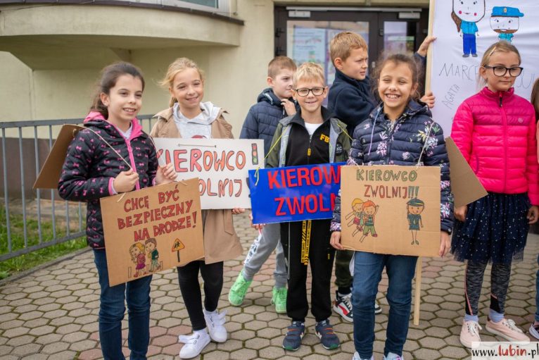 „Kierowco zwolnij”, „Chcę być bezpieczny na drodze” – transparenty z takimi hasłami przygotowali uczniowie Szkoły Podstawowej nr 14 w Lubinie. Dzieci włączyły się tym samym w pomoc funkcjonariuszom miejscowej drogówki podczas prewencyjnej akcji na ulicach naszego miasta.