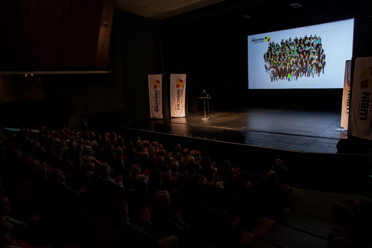 A jak wygląda plan na Lubin na najbliższe lata? Na konwencji przedstawiono wizję miasta w 2028 roku. Rynek zmienił się jeszcze bardziej – zniknęły bloki, pojawiły się kamienice. Powstało centrum przesiadkowe dla pasażerów pociągów i autobusów, tam gdzie kiedyś znajdował się dworzec kolejowy. Tuż obok stanął wybudowany przez KGHM biurowiec, w którym znalazły się siedziby wszystkich spółek grupy kapitałowej z Polkowic, Legnicy czy Wrocławia. Zamknęło to dyskusję o przeniesieniu siedziby KGHM do Warszawy. W budynkach zajmowanych w Lubinie przez miedziową spółkę ulokowała się zaś Politechnika Wrocławska, która funkcjonuje również na lubińskim lotnisku. Studentów dowozi na miejsce szybka kolej. Powstało centrum sportowo-rekreacyjne w pobliżu hali, w tym aquapark. To tylko niektóre z projektów zaprezentowanych na dzisiejszej konwencji.