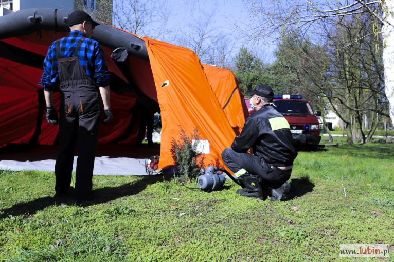 W Lubinie ruszy pogotowie wymazowe – miejsce, w którym będą pobierane próbki do badań pod kątem koronawirusa. Dziś strażacy rozstawili przeznaczony do tego namiot sanitarny. Samo pogotowie ma przyjąć pierwszych pacjentów już po świętach.