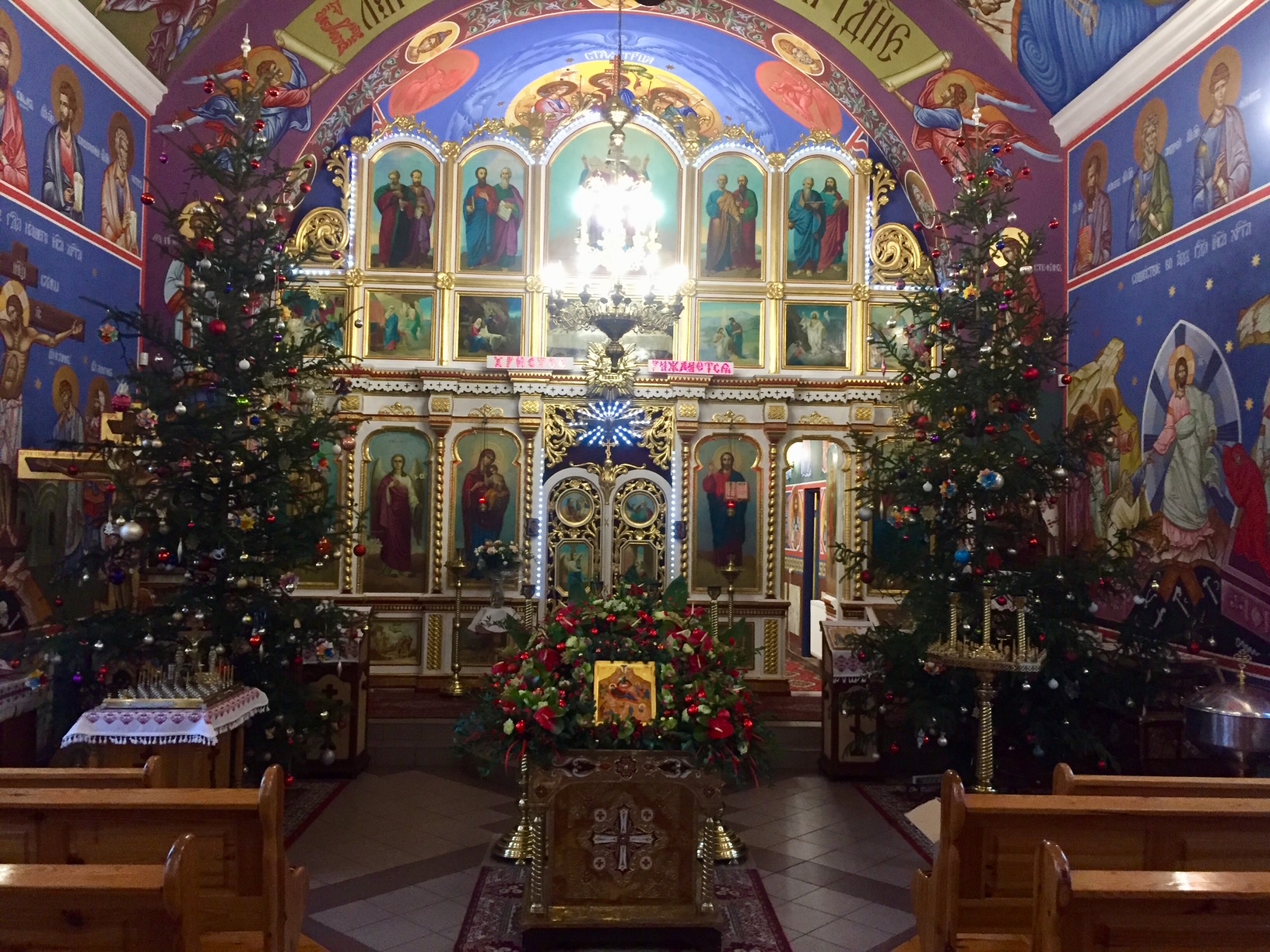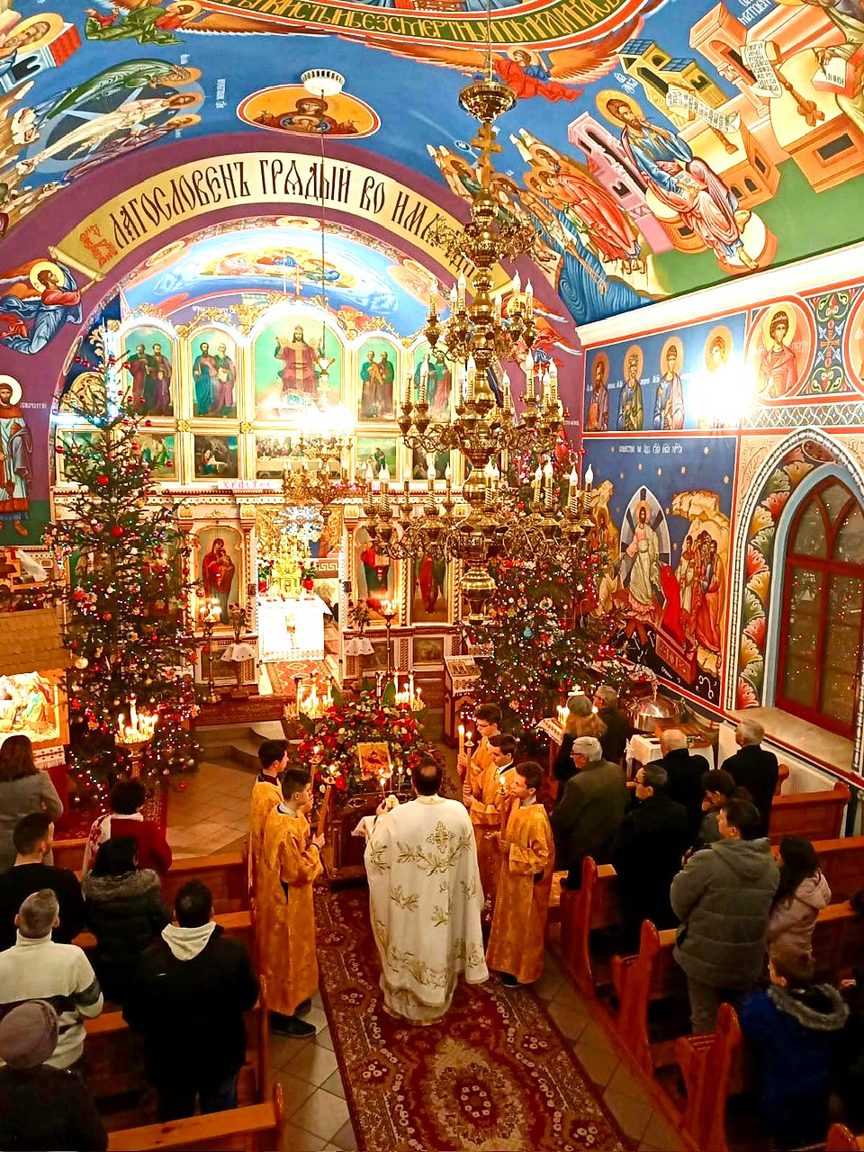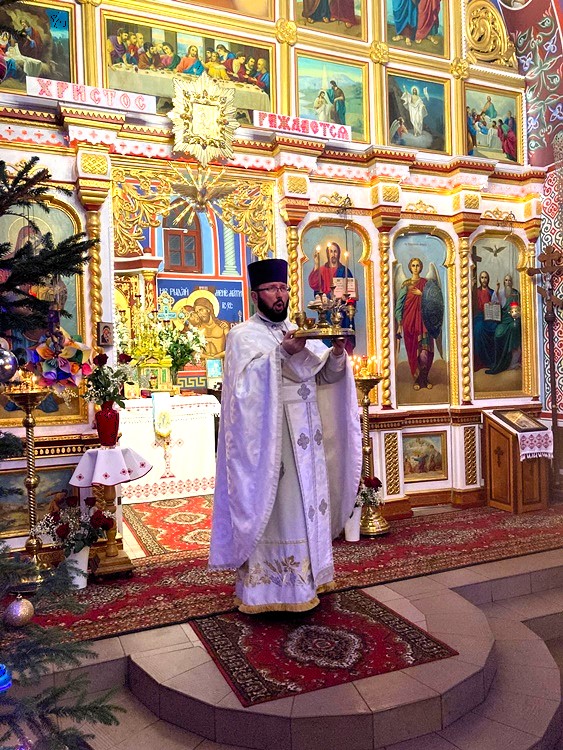 Na środku cerkwi umieszczana jest ikona Bożego Narodzenia, z której odczytujemy słowa Ewangelii. – Przypomina o mędrcach, którzy przybyli z dalekiego kraju, aby wysławiać Nowonarodzonego. Przypomina nam też pasterzy, którzy z pokorą i bojaźnią przyszli do Tego, przed który kłania się cała przyroda i stworzenie – tłumaczy duchowny.