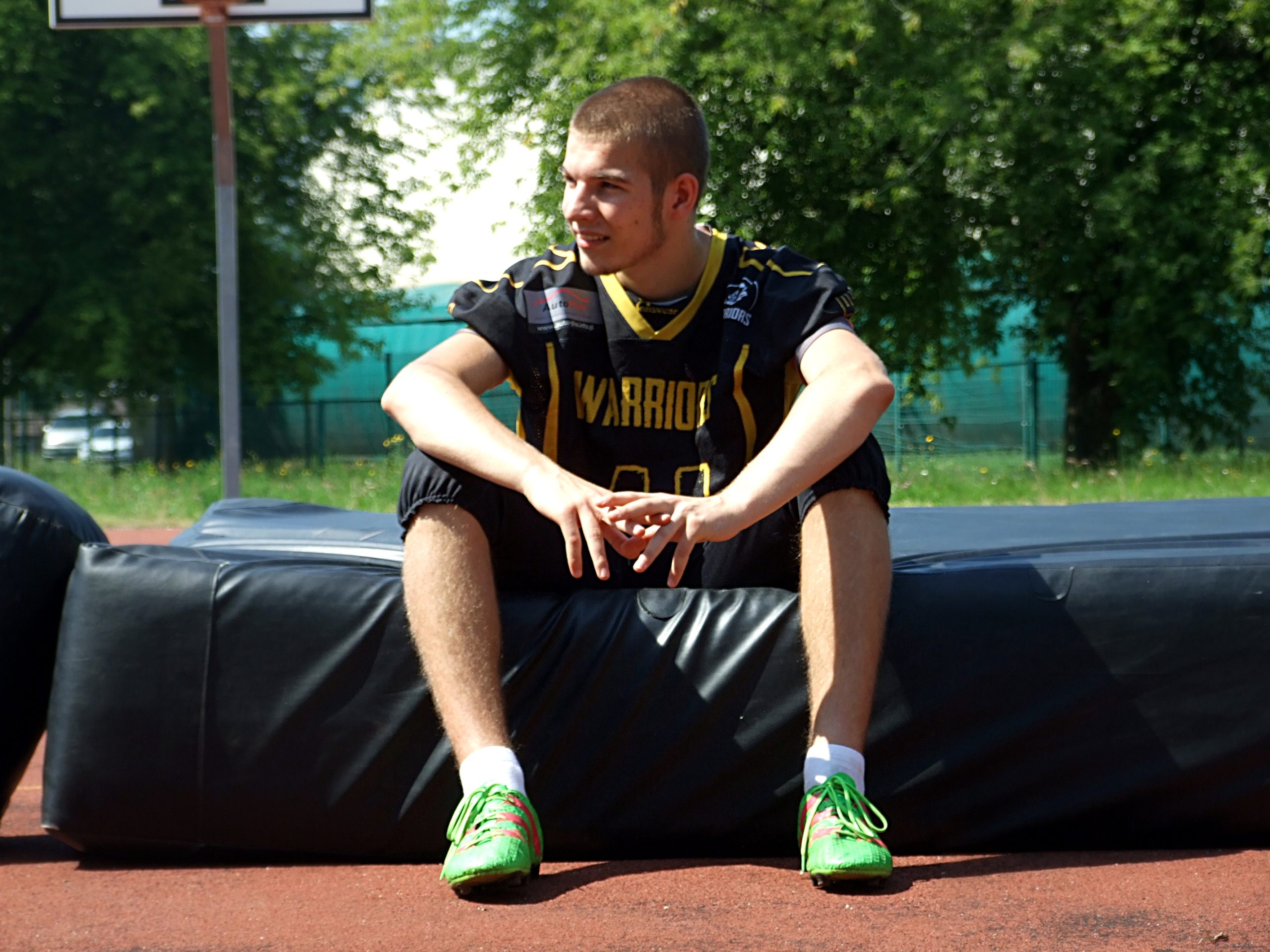 Jak to się zaczęło? Hmm… Powiem szczerze, rozpoczęło się od tego, że Warriors pojawili się w mojej szkole robiąc pokaz i wyjaśniali czym jest futbol amerykański. Na początku byłem niezadowolony, że zabierają mi w ten sposób lekcję wychowania fizycznego. Od dziecka kocham sport i chętnie go uprawiam, stąd niezadowolenie. Podczas wykonywania różnych stacji sprawnościowych, pomyślałem, że może spróbuję swoich sił w tym sporcie. Podczas wykonywania jednej ze stacji, podszedł do mnie trener i zapytał mnie, czy uprawiam jakiś sport lub czy trenowałem? Odpowiedziałem mu, że grałem trzy lata w piłkę ręczną. Trener uśmiechnął się do mnie i powiedział, że zaprasza na trening. Wtedy poczułem, że wciąż mogę rozwijać się fizycznie, ale w całkiem nowym dla mnie sporcie. Od tamtego czasu, uczęszczam na treningi regularnie i wiem, że moje wcześniejsze niezadowolenie, było niepotrzebne i cieszę się, że byli akurat na mojej lekcji.