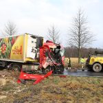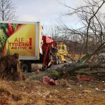 Policja wytyczyła objazd przez Gorzycę. Choć z kabiny ciężarówki niewiele zostało, to na szczęście kierowca poważnie nie ucierpiał. Na miejscu dobiegają już końca działania służb ratunkowych. TIR-a udało się wyciągnąć, a lada chwila droga powinna być już przejezdna.