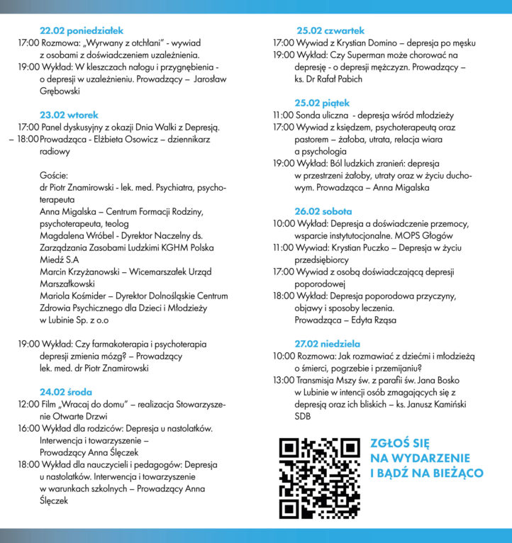 Wydarzenie, po raz drugi, organizuje Centrum Formacji Rodziny w Lubinie. Odbędzie się ono w tygodniu, w którym wypada Dzień Walki z Depresją, czyli od 21 do 28 lutego.