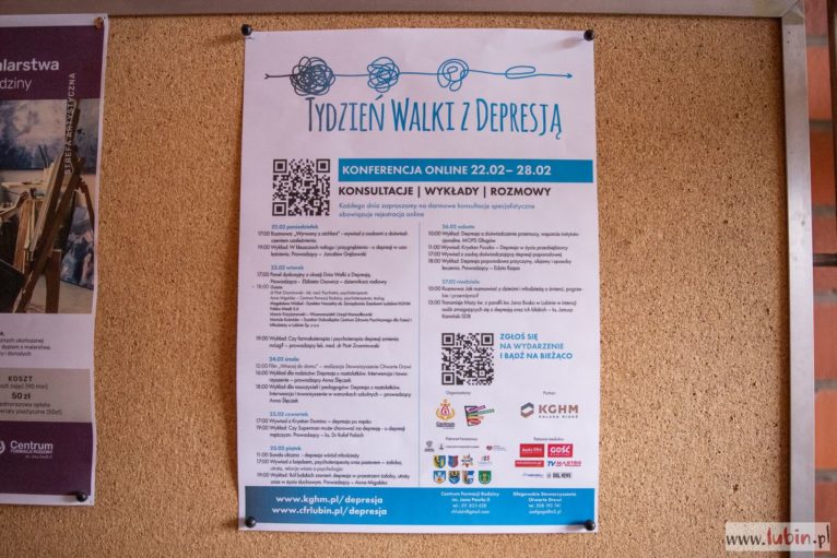 W ramach Tygodnia Walki z Depresją mieszkańcy Lubina, a także całego Zagłębia Miedziowego będą mogli skorzystać z bezpłatnych konsultacji, wykładów, wywiadów oraz wysłuchać rozmów ze specjalistami zdrowia psychicznego, z przedstawicielami samorządów i jednostek publicznych, z osobami dzielącymi się swoim własnym doświadczeniem.