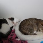 Do adopcji także 3-miesięczna parka: kocurek i jego biało-buro-pręgowana przyjaciółka.