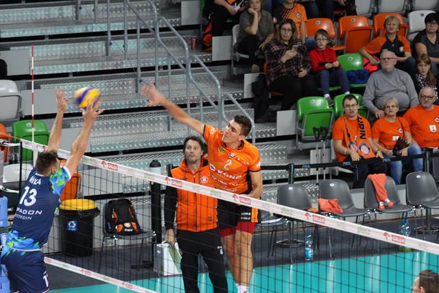 Już na początku spotkania podopieczni Gheorghe Cretu narzucili rywalom ciężkie warunki. Skuteczna zagrywka, a dodatkowo bardzo pewny podwójny blok, dały lubinianom zwycięstwo 3:0.